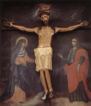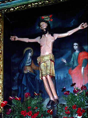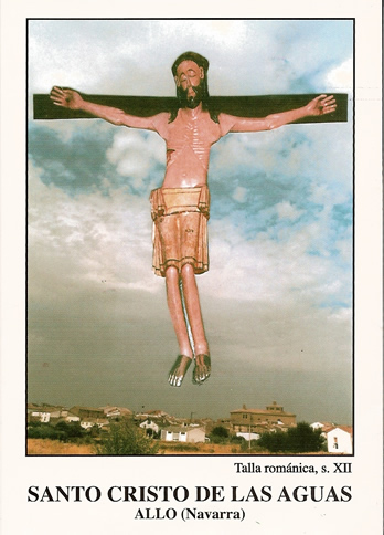 LOCALIDAD : ALLO ( Navarra) HERMANDAD: ------------- IGLESIA: Basílica del Santo Cristo de las Aguas AUTOR DE LA OBRA: Anónima FECHA DE REALIZACIÓN: Finales del siglo XI principios del XII ORIGEN DE LA ADVOCACIÓN: Rogativa para las lluvias. OTROS DATOS DE INTERÉS: Es el patrón de la localidad, celebra sus fiestas a partir del 22 de Agosto. No procesiona.
