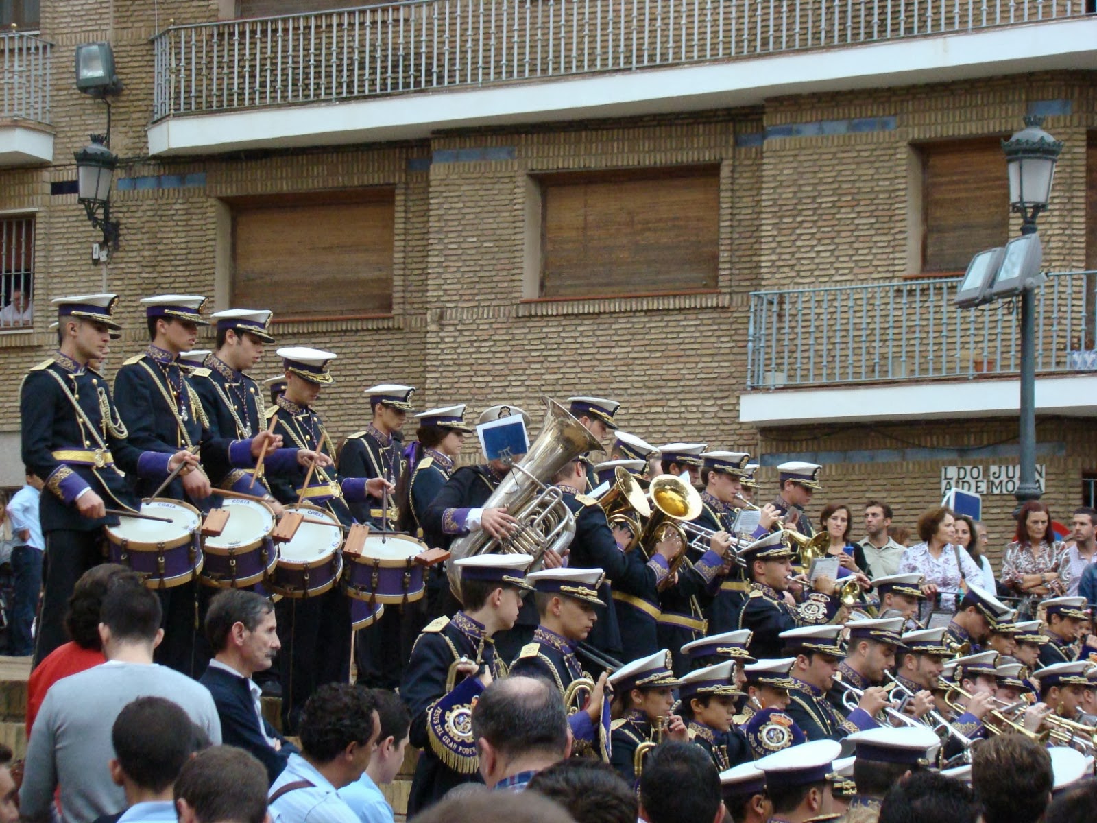 El sábado 19 de octubre estaba previsto en la ciudad de Huelva la realización de un Vía Crucis Magno con motivo de realzar la celebración del “Año de la Fe”, para lo cual las cofradías de la capital onubense habían dispuesto un total de 17 pasos que harían una procesión de traslado desde sus templos hasta la Plaza de las Monjas, lugar donde se realizaría el acto principal de culto ante las sagradas imágenes y posterior regreso a sus sedes canónicas. Nada de eso fue posible por mor de las inclemencias meteorológicas, la tan temida lluvia hizo su presencia desde las primeras horas del mediodía lo que provocó la suspensión definitiva del acto después de algún tiempo de incertidumbre pues el caos organizativo fue bastante grande. Les mostramos imágenes de la Plaza de las Monjas vacía a la hora que debería estar repleta de público, así como la carrera oficial por delante del Ayuntamiento en una imagen desoladora. Y como símbolo de la frustración y de las ganas de “semana santa” la Banda de Nº Padre Jesús del Gran Poder de Coria del Río que iba a acompañar el paso del Descendimiento se puso a dar un concierto improvisado en las escaleras de la iglesia de San Pedro.