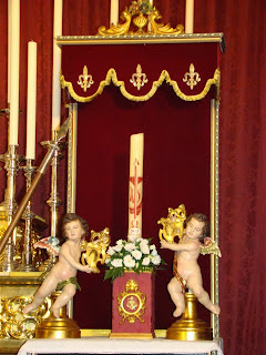 Con motivo de clausurarse el 24 de noviembre el “Año de la Fe” la Hermandad de la Resurrección ha montado un altar extraordinario para celebrar sus cultos. Preside la imagen de su titular, el Resucitado de Francisco Buiza junto con el ángel , de igual manera a como aparece en el paso de misterio, le acompañan las figuras de un romano perteneciente a la Hermandad del Cautivo del barrio de Torreblanca y dos de las Marías del paso de la Hermandad de la Misión del barrio de Heliópolis, todo ello presidido por una cruz de la Hermandad de los Servitas de Sevilla. Felicitamos a la Hermandad por tan brillante iniciativa.