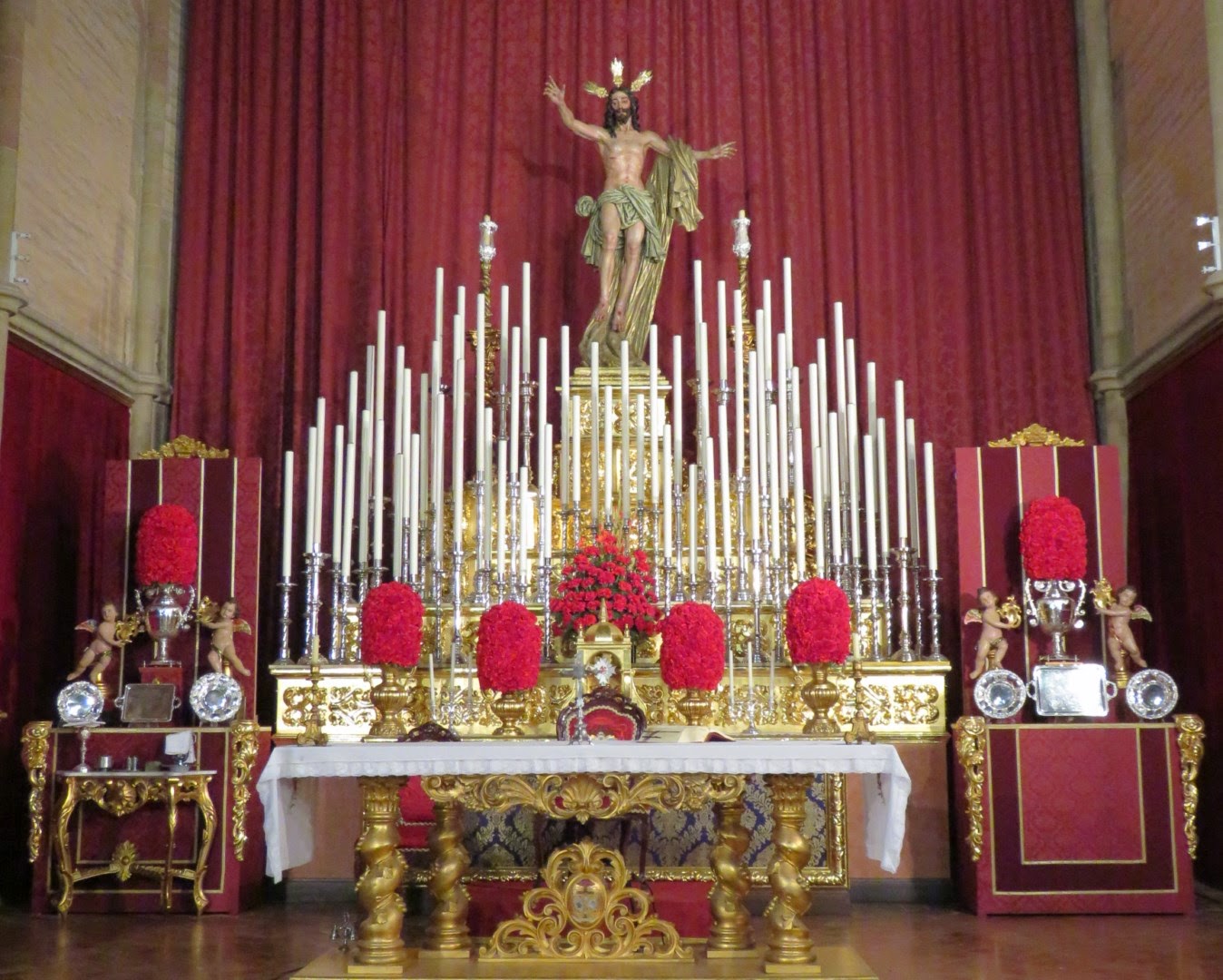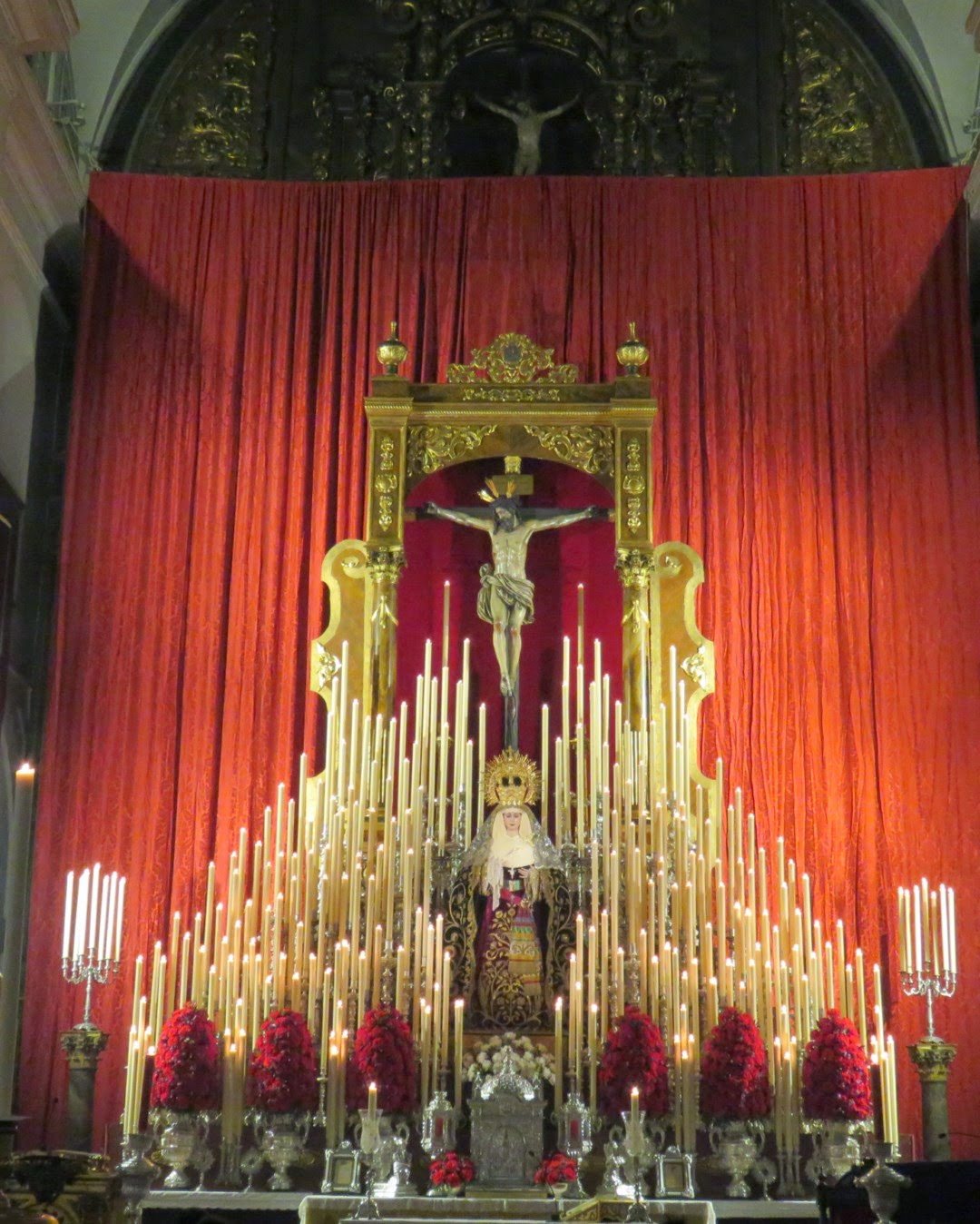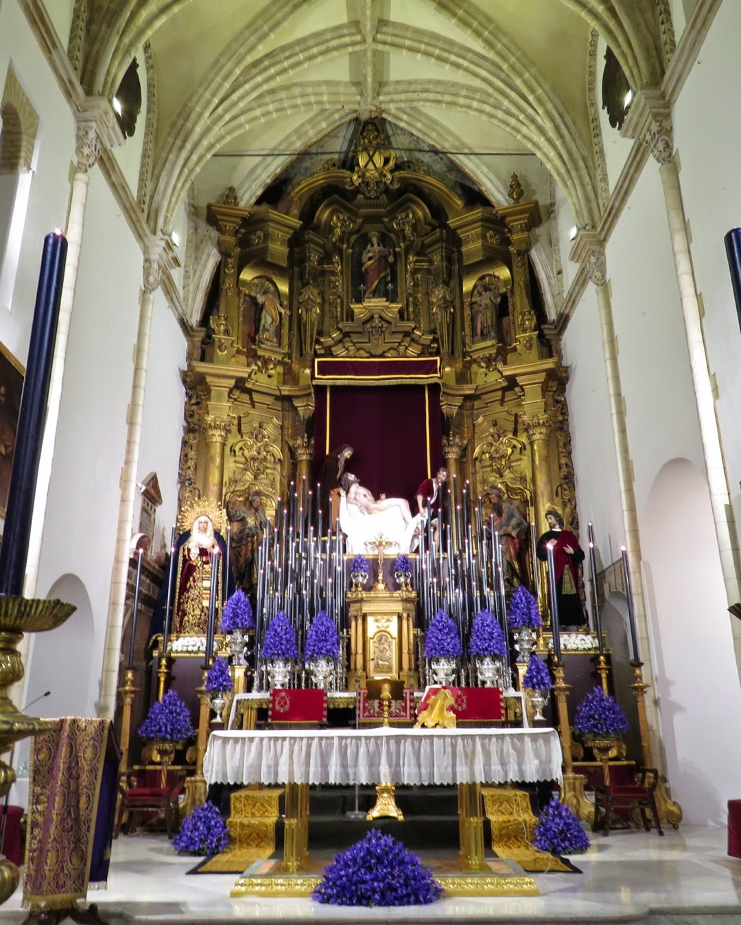Durante la cuaresma es cuando se celebran la mayoría de los cultos principales de las hermandades penitenciales de Sevilla, quinarios, triduos y septenarios se suceden unos tras otro en los diferentes templos de la ciudad. Para realzar dichos cultos se montan altares extraordinarios de carácter efímero en los presbiterios de las iglesias. Les mostramos una selección de algunos de los instalados en la presente cuaresma de 2015 que ya toca a su fin.