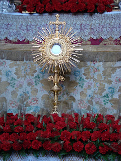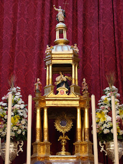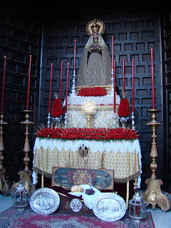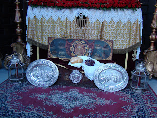En la presente edición del Corpus sevillano se ha notado un descenso en el número de altares callejeros así como de balcones engalanados, suponemos que será por culpa de la crisis económica que nos azota y que hace que el dinero si existe se emplee para otras cosas. Lo cierto y verdad es que solamente las hermandades de casi siempre son las que han continuado con la bella tradición de montar altares en honor al Santísimo Sacramento, como novedades la vuelta de la Hermandad de la Resurrección a colocar un altar en la avenida, también el regreso de la Hermandad de la Asunción de Cantillana y quizás la ausencia más destacada ha sido la de la Hermandad de la Sed tras dos años colocando un bello y espectacular altar en la esquina de Placentines con Argote de Molina. Por lo demás todo continua más o menos igual.