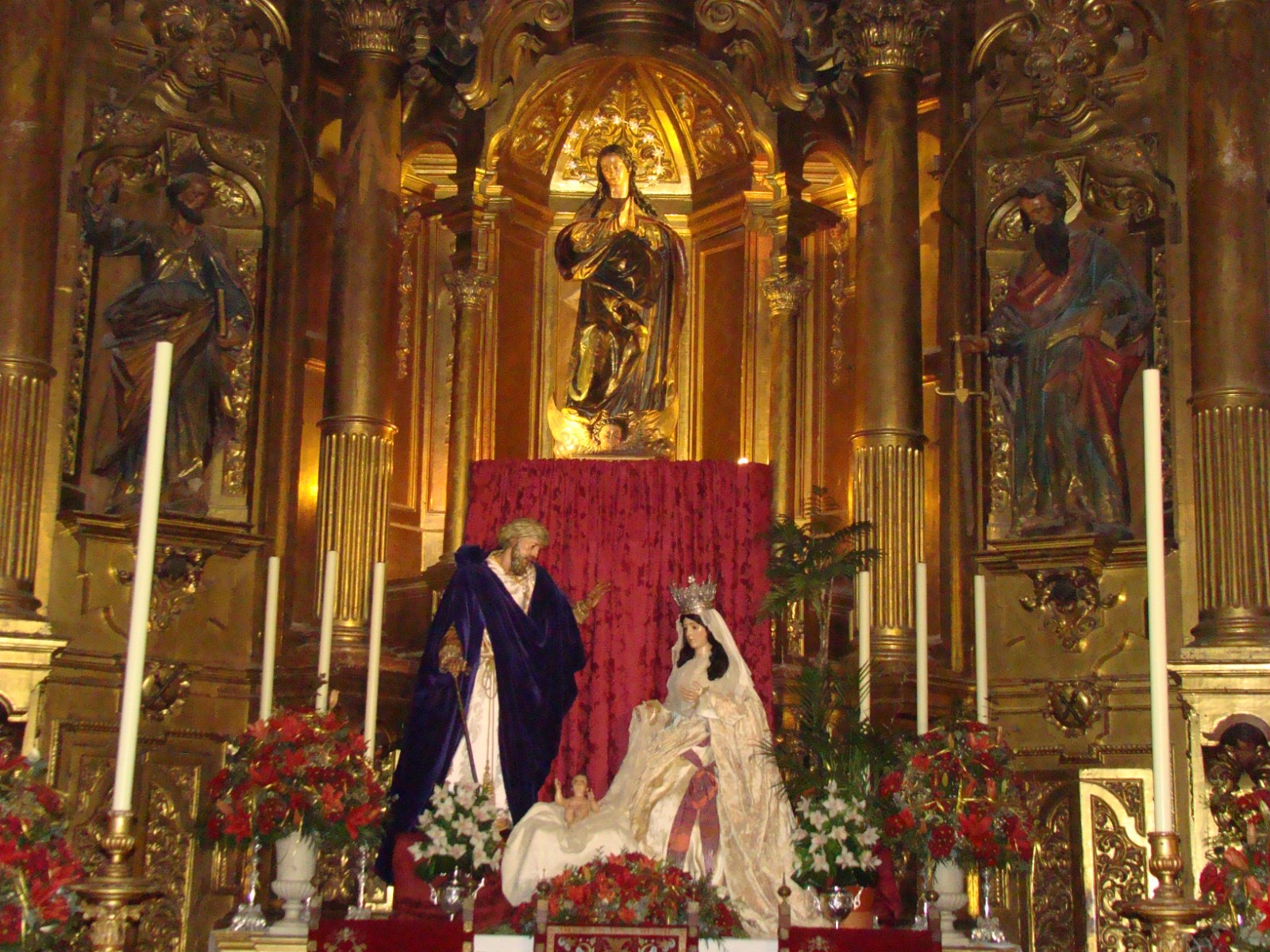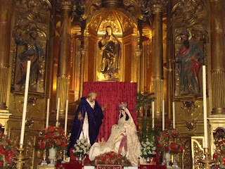 » En la iglesia parroquial de San Andrés la Hermandad de gloria de Nª Sª de Araceli de Sevilla ha instalado en el altar mayor un nacimiento donde su imagen letífica titular es la protagonista, junto con una imagen de San Joaquín reconvertida en San José para la ocasión. Una iniciativa que se realiza por primera vez y esperemos que continue muchos años para perpetuar las bellas tradiciones de nuestra tierra y de nuestras hermandades.»
