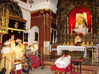 » Una de las novedades del presente año en cuestión de belenes la aporta la Hermandad del Baratillo, que ha pasado del tradicional de figuritas a uno de imágenes de tamaño natural. Lo ha instalado en un lateral de su capilla, resaltando sobremanera el vestuario de las mismas que ha sido cedido por un anticuario. El detalle más cofrade nos lo traen los Reyes Magos, Melchor porta una limosnera, Gaspar un incensiario y Baltasar una naveta.»