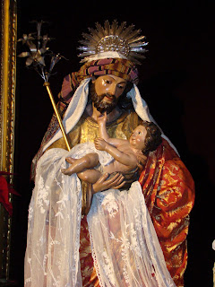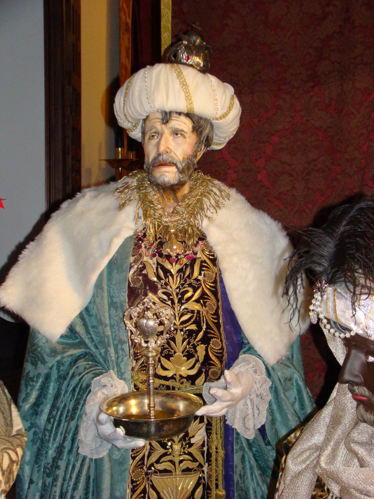 » Una de las novedades del presente año en cuestión de belenes la aporta la Hermandad del Baratillo, que ha pasado del tradicional de figuritas a uno de imágenes de tamaño natural. Lo ha instalado en un lateral de su capilla, resaltando sobremanera el vestuario de las mismas que ha sido cedido por un anticuario. El detalle más cofrade nos lo traen los Reyes Magos, Melchor porta una limosnera, Gaspar un incensiario y Baltasar una naveta.»