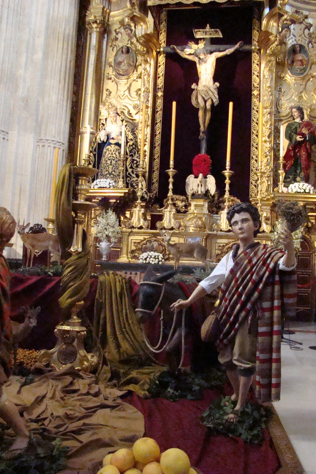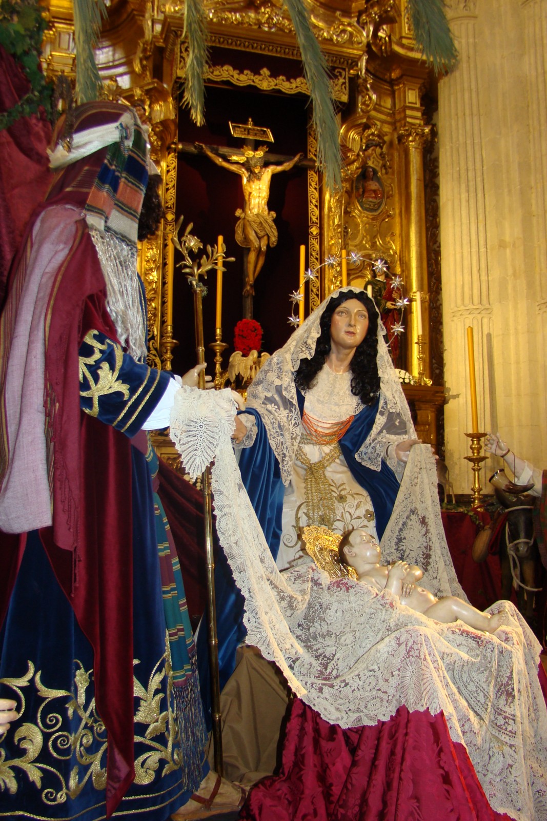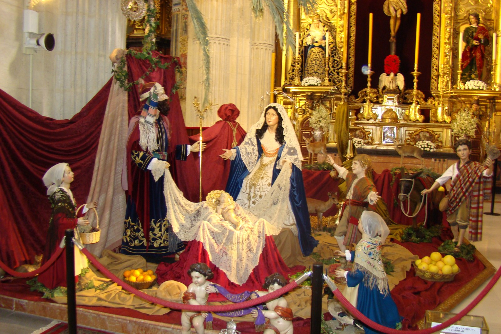«Como es tradición en la sevillana Hermandad del Amor todos los años, el belén que instalan en la iglesia del Divino Salvador para recrear el nacimiento del Niño Dios lo realizan con las imágenes secundarias del paso de la Borriquita, primero de los pasos que componen el cortejo de esta Hermandad el Domingo de Ramos.
