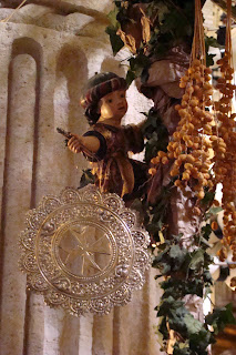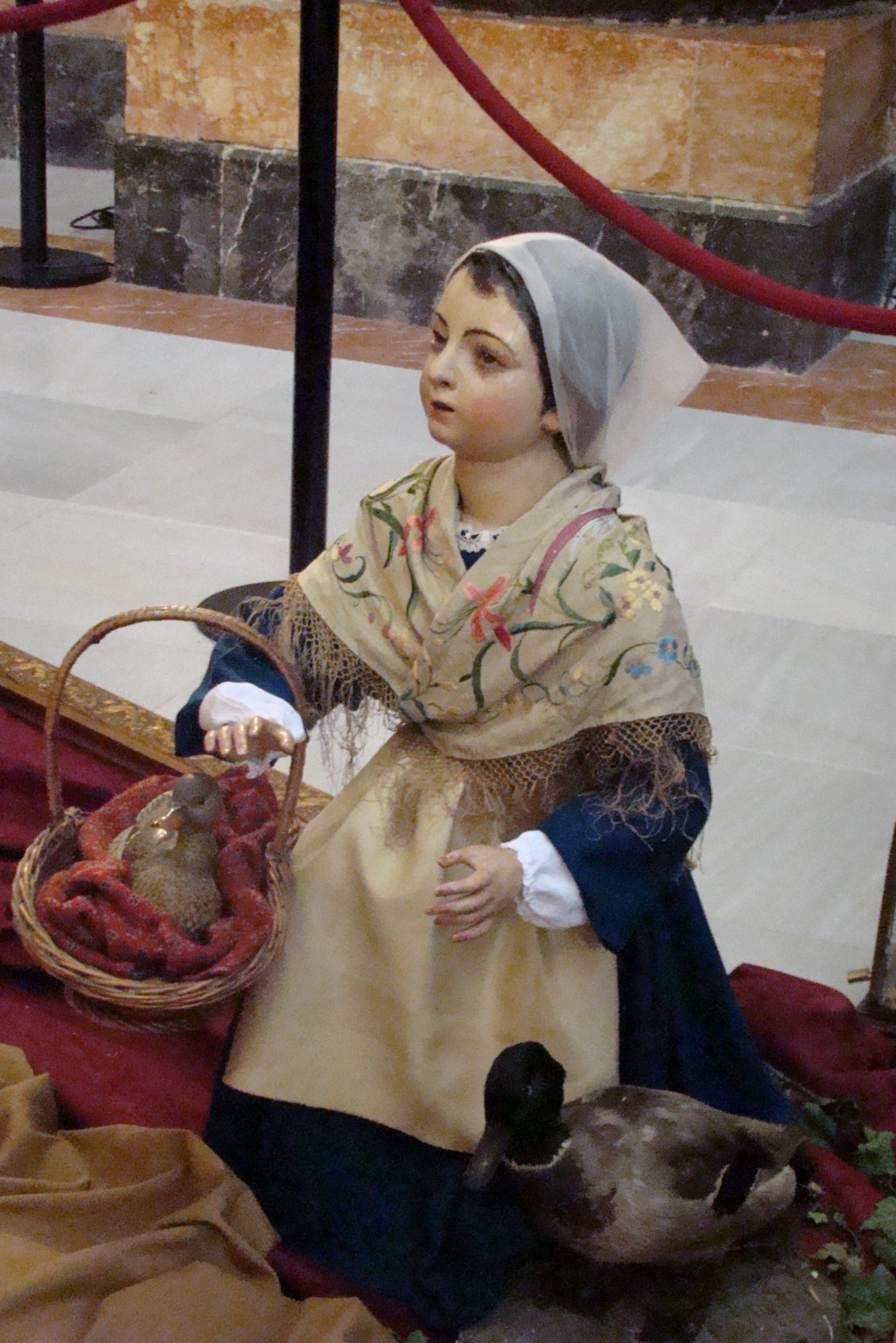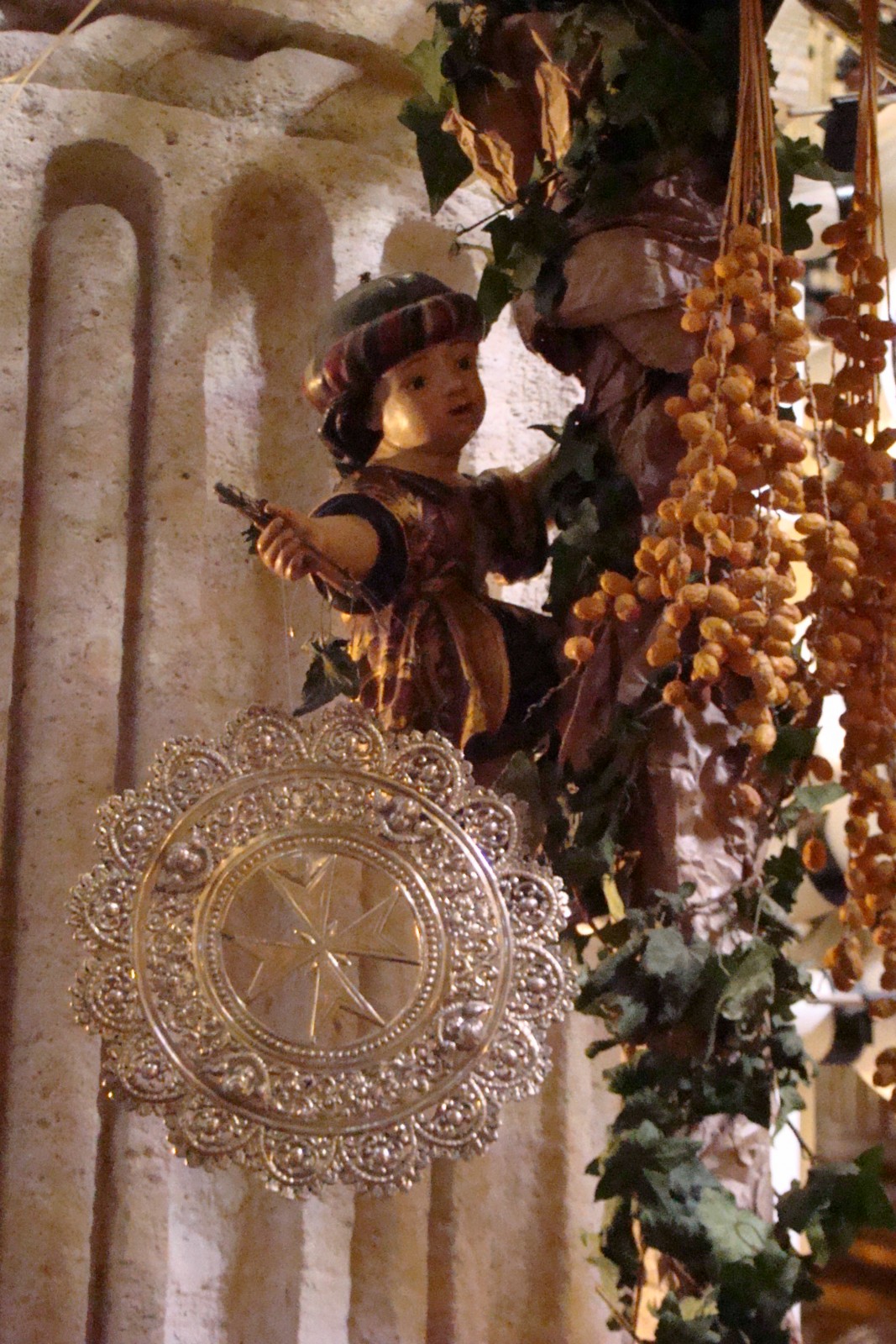 Ubicado delante del altar donde se encuentran los otros titulares constituye un magnífico ejemplo catequético, Jesús viene al mundo para salvarnos mediante su muerte en la Cruz. »