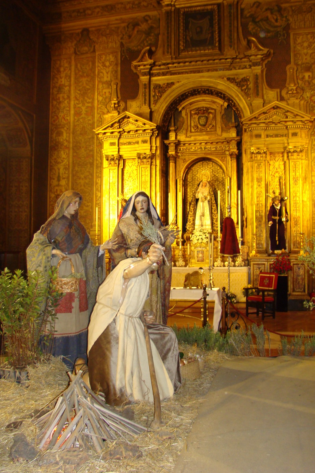 «La conocida popularmente Hermandad del Valle de Sevilla instala en su sede canónica, la iglesia de la Anunciación un belén monumental realizado con las imágenes secundarias de sus dos pasos de misterio, la Coronación de Espinas y Jesús con la Cruz al hombro. Por unos días los sayones se transforman en pastores o reyes magos y las marías en pastoras que van a adorar al Niño Jesús recién nacido. »