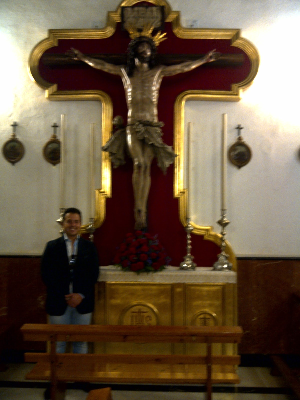 Fotografía de Manuel Martín Nieto junto al Stmo. Cristo del Perdón.