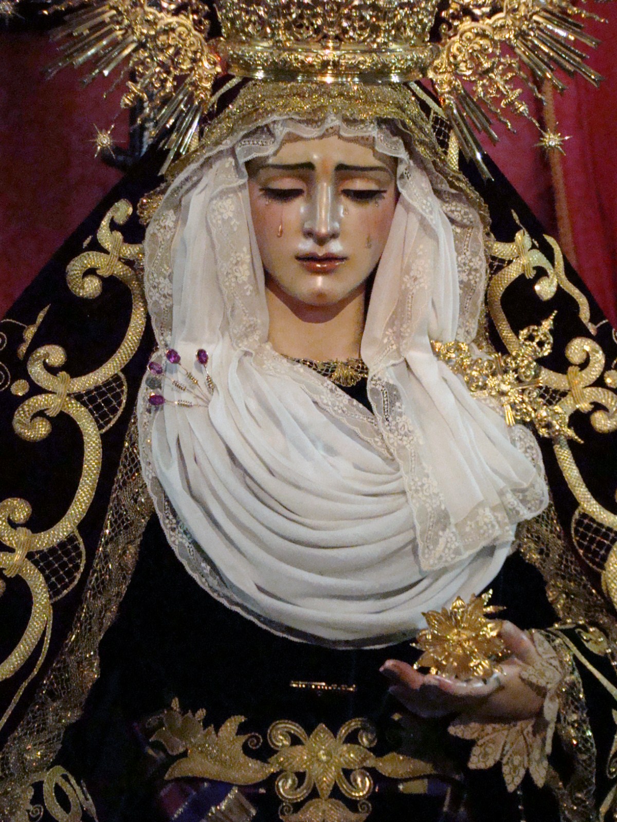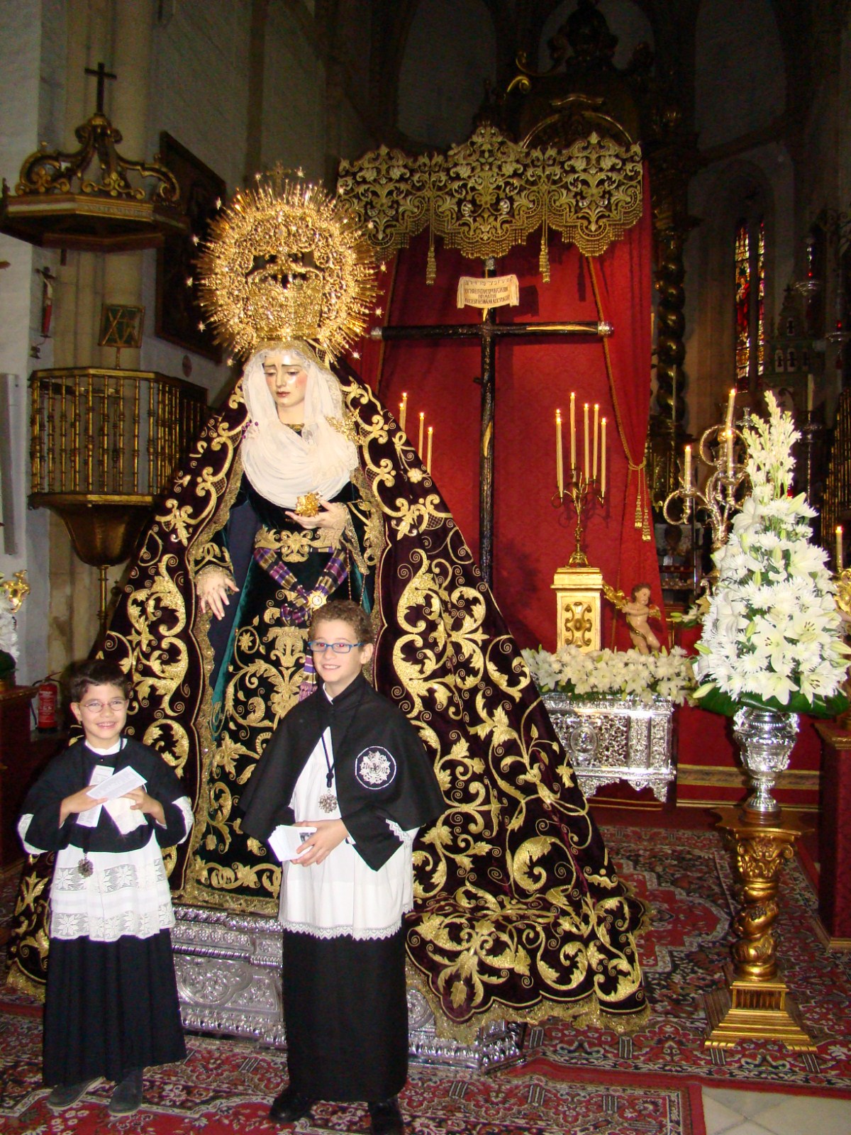 » Durante el tercer fin de semana de noviembre la Virgen de Nª Sª de Gracia y Amparo de la Hermandad de los Javieres ha estado en devoto y solemne besamanos en la iglesia de Omniun Santorum. La imagen lucía el manto de salida, un bello altar de besamanos que tenia por testigo privilegiado a Nª Sº Reina de Todos los Santos.»