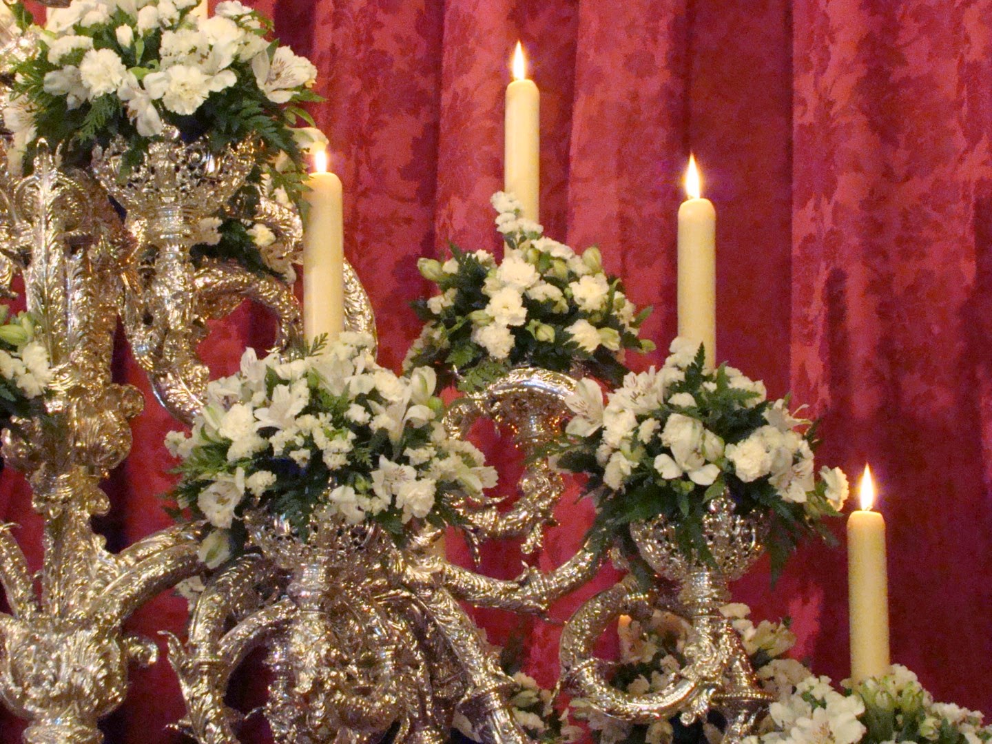 El pasado viernes 23 de mayo la Hermandad de la Hiniesta conmemoró el 40 aniversario de la coronación canónica de su titular letífica, la Virgen de la Hiniesta gloriosa. Por este motivo se realizó un besamanos en la iglesia parroquial de San Julián y posterior función solemne. Les mostramos imágenes del bello altar de besamanos instalado en el presbiterio con los antiguos respiraderos del paso de palio y los candelabros de cola del actual, bellamente exornados para la ocasión.