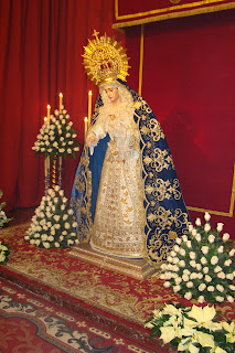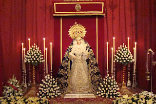 «Durante los días 17 y 18 de diciembre nuestra sagrada titular María Santísima de Guadalupe ha estado expuesta en devoto besamanos,les mostramos varias fotografías del mismo, donde una vez más nuestra virgen ha brillado con luz propia, la sencillez y elegancia del montaje ha resaltado aún más si cabe su belleza.»