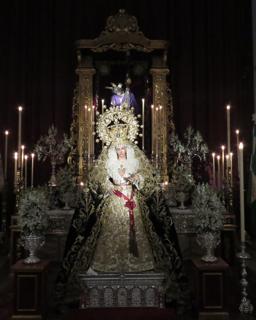 En el presente artículo les mostramos el de Nª. Sª. de Gracia y Esperanza de la Hermandad de San Roque que en el presente año está vestida por Grande de León que se estrena en el cargo. El fondo de altar ha sido ocupado por la otra imagen titular de la cofradía, Nº. Padre Jesús de las Penas.