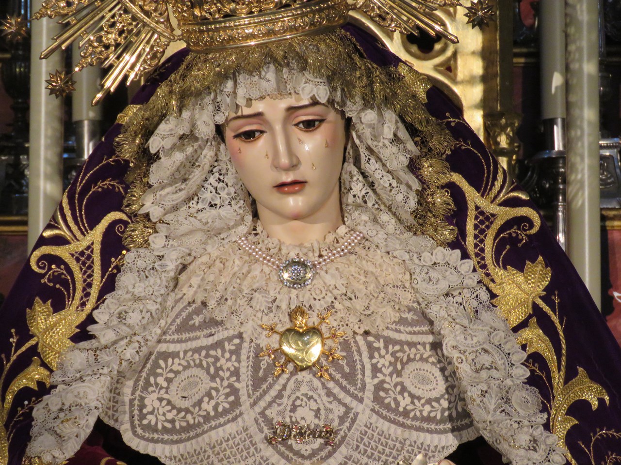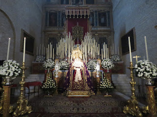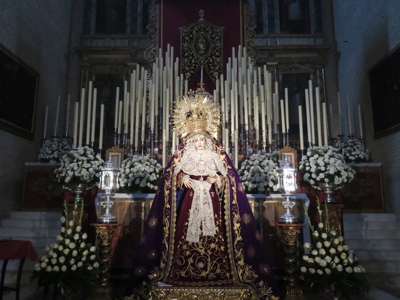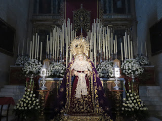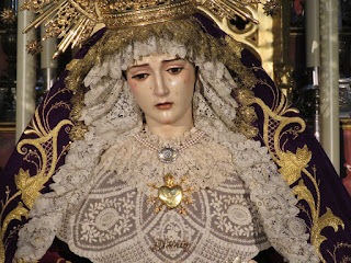 El Viernes de Dolores antesala de la Semana Santa es una jornada plenamente cofrade. Además del inicio de las procesiones de las Hermandades de Vísperas , se producen otros actos como traslados de subida a los pasos, vía crucis y besamanos, no solamente en la capital sino en muchos pueblos de nuestra provincia. Les mostramos uno de los más destacados de esta jornada el besamanos de Nª. Sª. de los Dolores de la Hermandad de Nº. Padre Jesús Nazareno, conocida popularmente como los “Blancos” de la localidad de Salteras, que se realiza en la iglesia parroquial de Santa María de la Oliva.