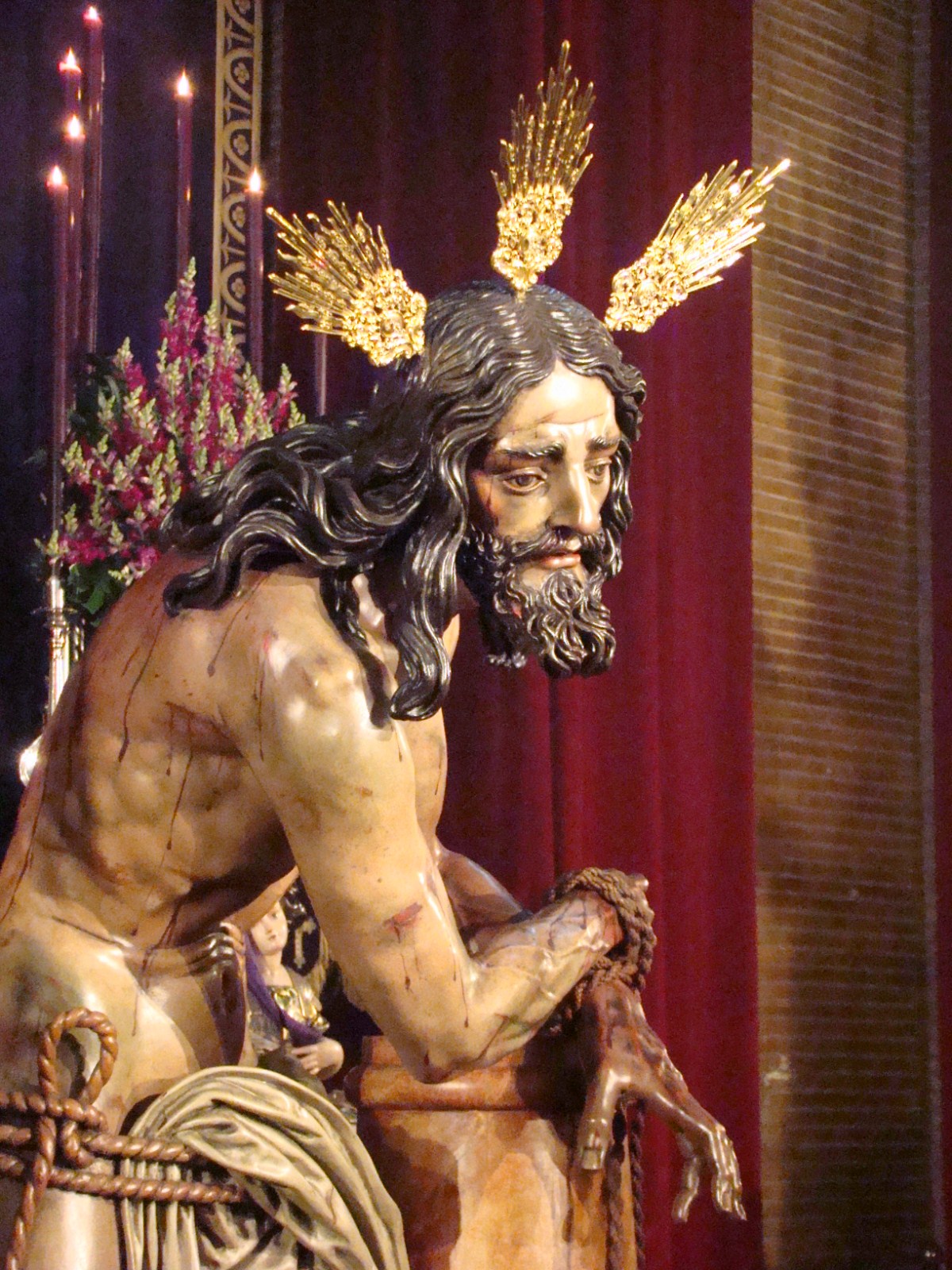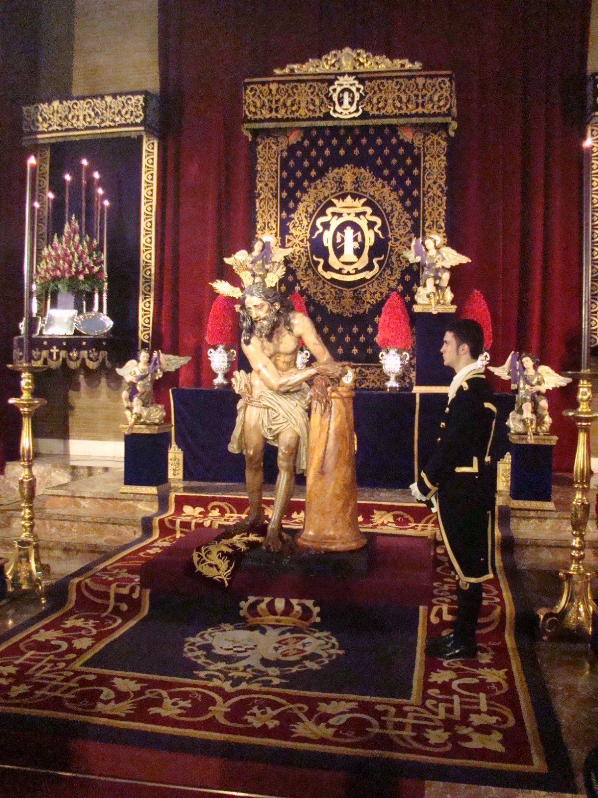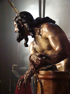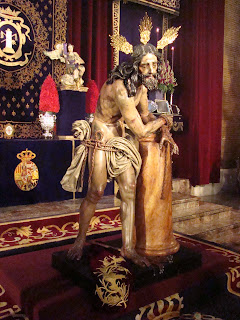 » En la Capilla de la fábrica de tabacos durante el tercer fin de semana de noviembre ha estado en solemne y devoto besamanos la imagen de Nº Padre Jesús atado a la Columna de la Hermandad de las Cigarreras, la bella imagen de Francisco Buiza resaltaba sobremanera en el magnífico altar instalado por lospriostes para la ocasión.»