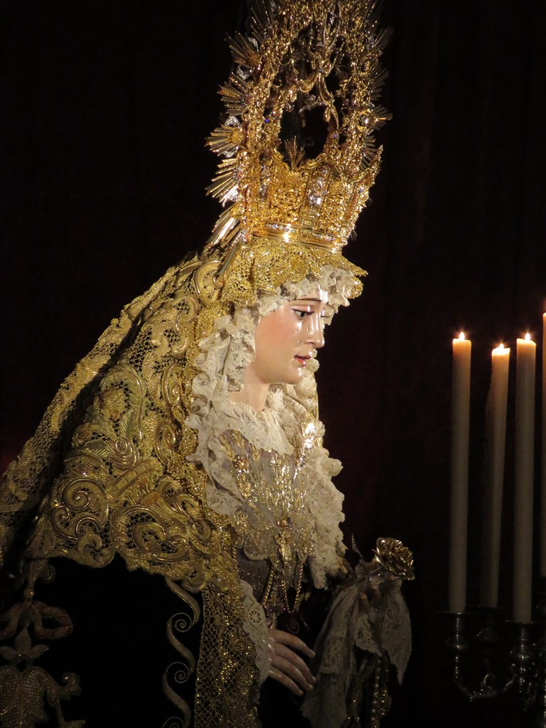 En Sevilla el domingo anterior al de Ramos es una jornada sumamente cofrade, aparte de pronunciarse el pregón de la Semana Santa, numerosas imágenes titulares de las diversas Hermandades de la ciudad se encuentran expuestas en devotos besamanos como paso previo a su subida al paso. Les mostramos algunos de los celebrados el pasado domingo, concretamente los de Nª. Sª. de la Palma, Nª. Sª. de la Aurora, Nª. Sª. del Carmen Doloroso, Nª. Sª. de las Aguas y el de Mª. Santísima de la Piedad de la Hermandad de la Sagrada Mortaja.