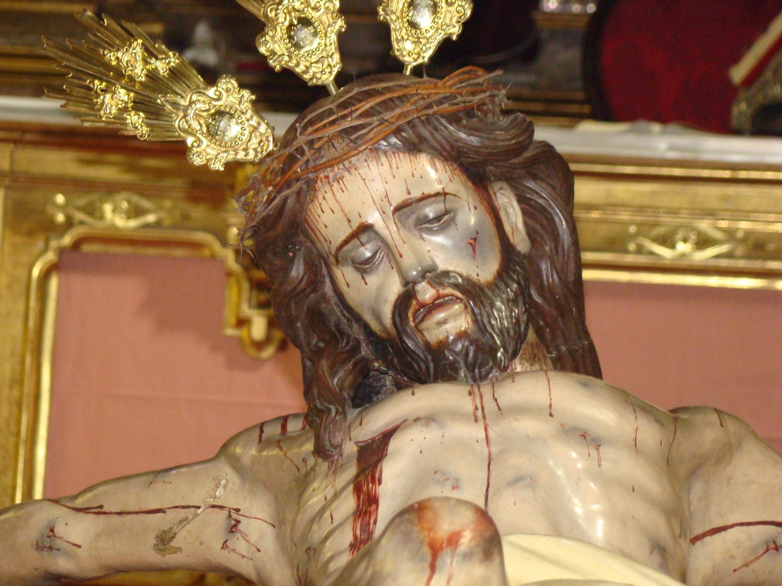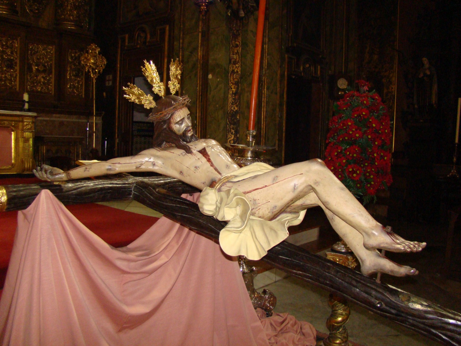 Santísimo Cristo de la Lanzada. ( Hermandad de la Lanzada). Obra anónima de finales del siglo XVII o principios del XVIII, atribuido a la escuela de Alonso Cano.