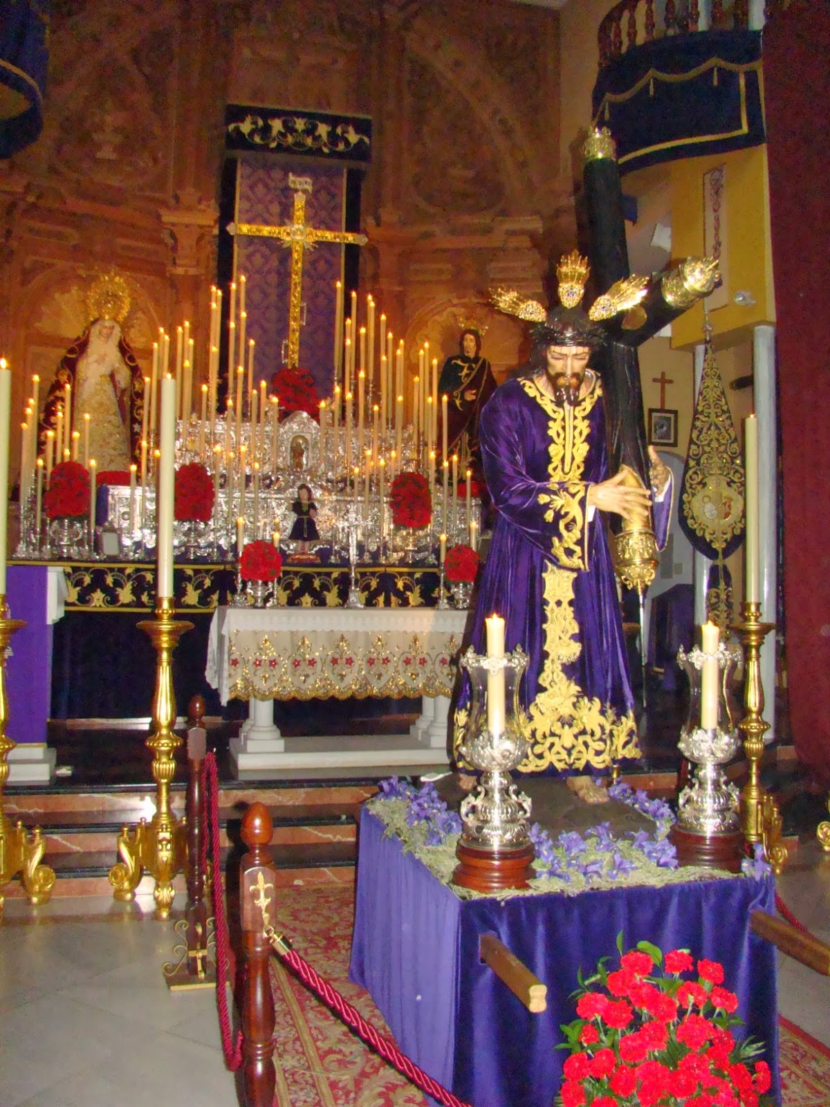Durante los días 8 y 9 de febrero se ha celebrado el solemne besapiés de Nº Padre Jesús Nazareno de la localidad sevillana de La Algaba. La imagen se encontraba en medio de la nave de su templo y como fondo estaba el altar del quinario celebrado con anterioridad donde se encontraban las imágenes de Nª Sª de los Dolores y San Juan evangelista también titulares de dicha Hermandad.