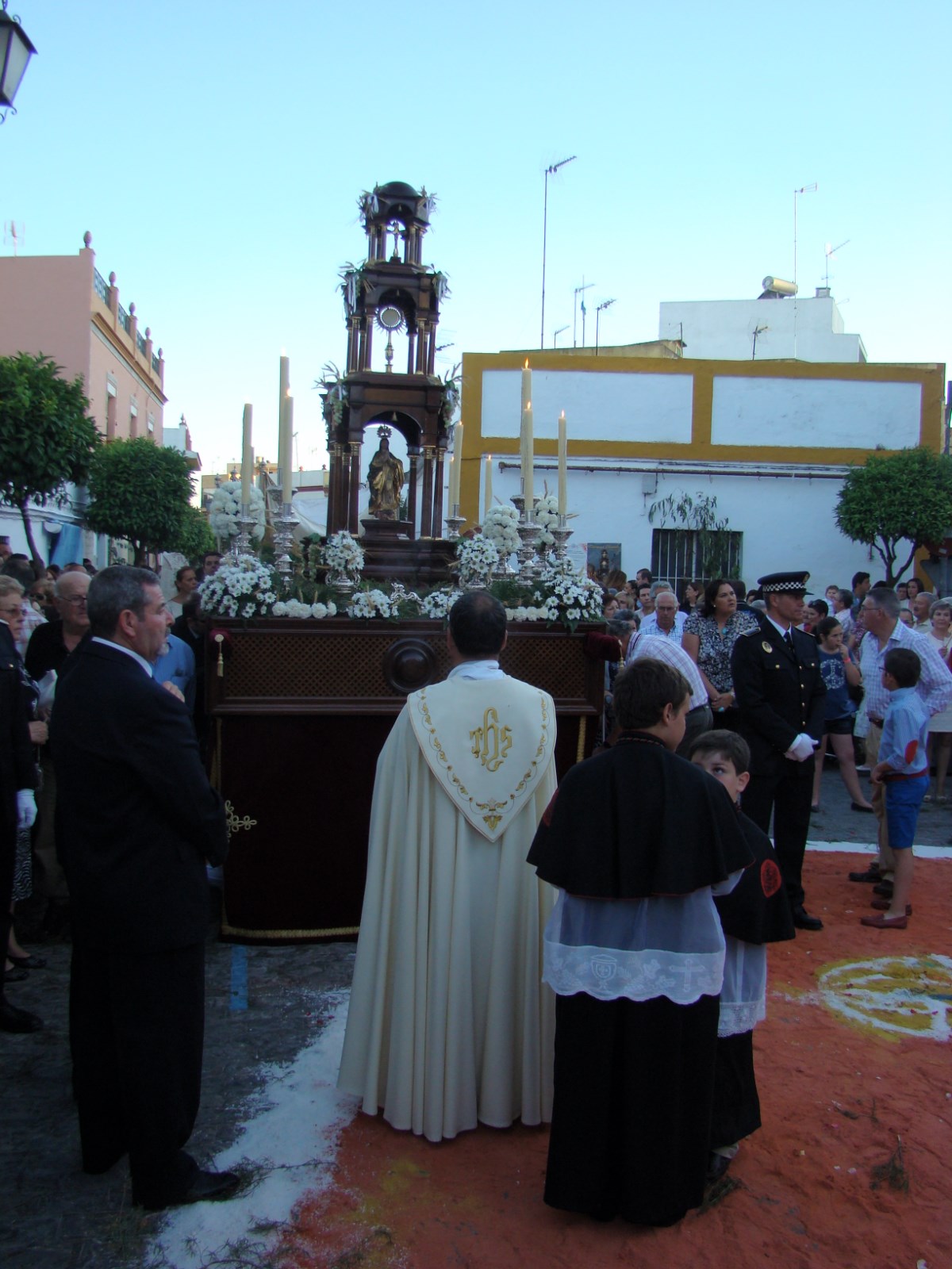 A las ocho y media de la tarde del sábado anterior al domingo de Corpus y organizada por la Hermandad Sacramental y de la Veracruz de la localidad, sale la procesión del Corpus desde la parroquia de Nª Sª de la Encarnación. El cortejo consta de cuatro imágenes, en primer lugar las andas con el Niño Jesús perdido, en segundo lugar el paso de Santo Domingo de Silos, patrón de la localidad, después va el paso de la patrona de Bormujos, Nª Sª de la Encarnación, imagen fechada en el siglo XVIII de autor anónimo y en último lugar figura el paso de la Custodia.