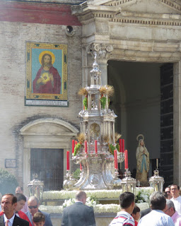 La ciudad de Écija vivió el pasado domingo 7 de junio un esplendoroso día de Corpus ya que con motivo de celebrarse en el presente año el cuarto centenario del Voto Concepcionista que realizó el cabildo de la localidad en defensa del dogma de la Inmaculada se celebró una procesión extraordinaria no solamente por el recorrido sino por la participación de 10 pasos con imágenes marianas que pertenecientes a las diferentes hermandades de la localidad realzaron el recorrido con sus altares y posterior procesión hasta la iglesia de Santiago para presidir las Jornadas Marianas que se celebrarán en dicho templo hasta el 20 de junio.