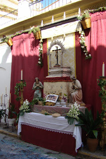 » En todas las calles del recorrido de la procesión del Corpus marchenero encontraremos altares ,calles y fachadas engalanadas, tanto los particulares en los portales de sus domicilios, como las diferentes Hermandades, se esmeran en el montaje de los diversos altares por donde discurre el cortejo. Aqui pueden ver una pequeña muestra de los instalados en este año 2011. Y para finalizar solo nos queda recomendar a todos los cofrades y creyentes en general, que alguna vez se acerquen a Marchena a conocer esta festividad digna de ser contemplada».