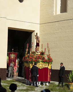 En la actualidad se inicia la procesión a las siete de la tarde desde la iglesia parroquial de Nª. Sª. de la Granada. El cortejo recorre las calles del centro de la población que se encuentran adornadas por una alfombra de romero, gallardetes y con bellos altares. Les mostramos diversos momentos de la procesión, el acompañamiento musical lo realizaron tres bandas que primero hicieron un pasacalles hasta llegar a la parroquia. La Banda de Nº P. Jesús del Gran Poder de Coria del Río iba detrás del paso de San Sebastián, la Banda de Música de la Hermandad sevillana de las Cigarreras iba detrás del paso de la patrona Nª. Sª. de la Granada y acompañando el paso de la Custodia iba la Banda Municipal de la Puebla del Río .