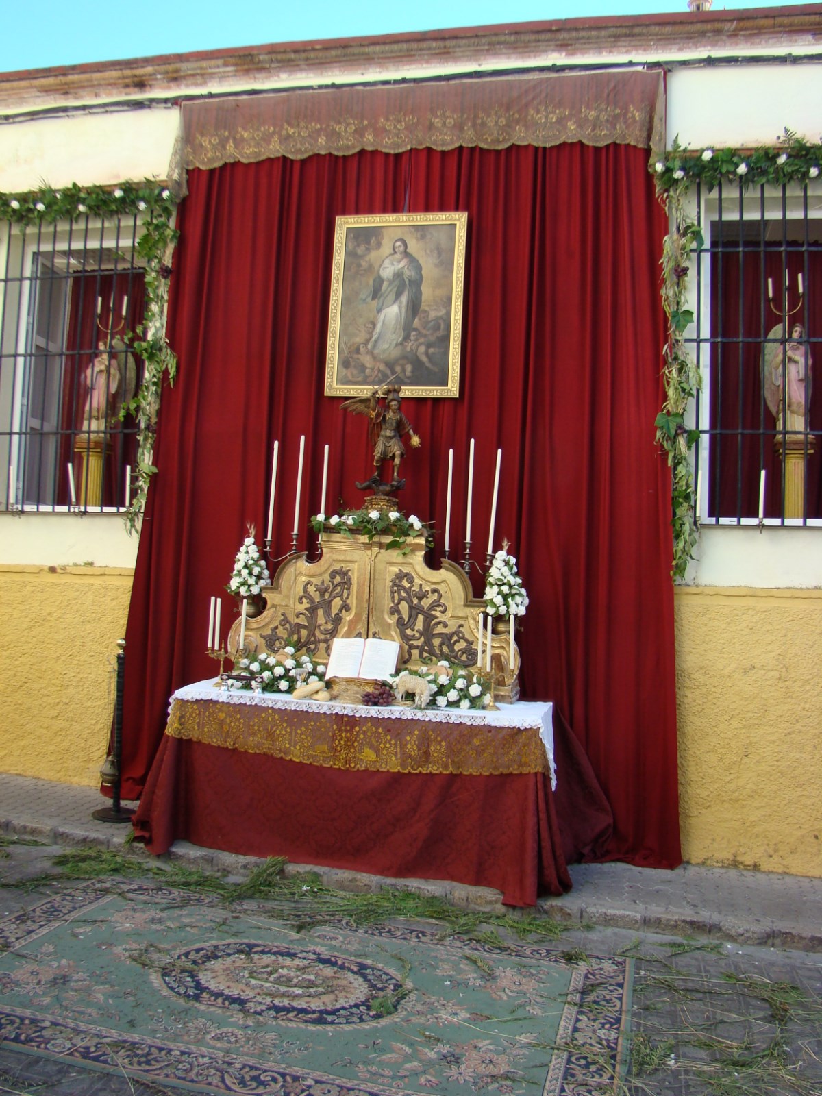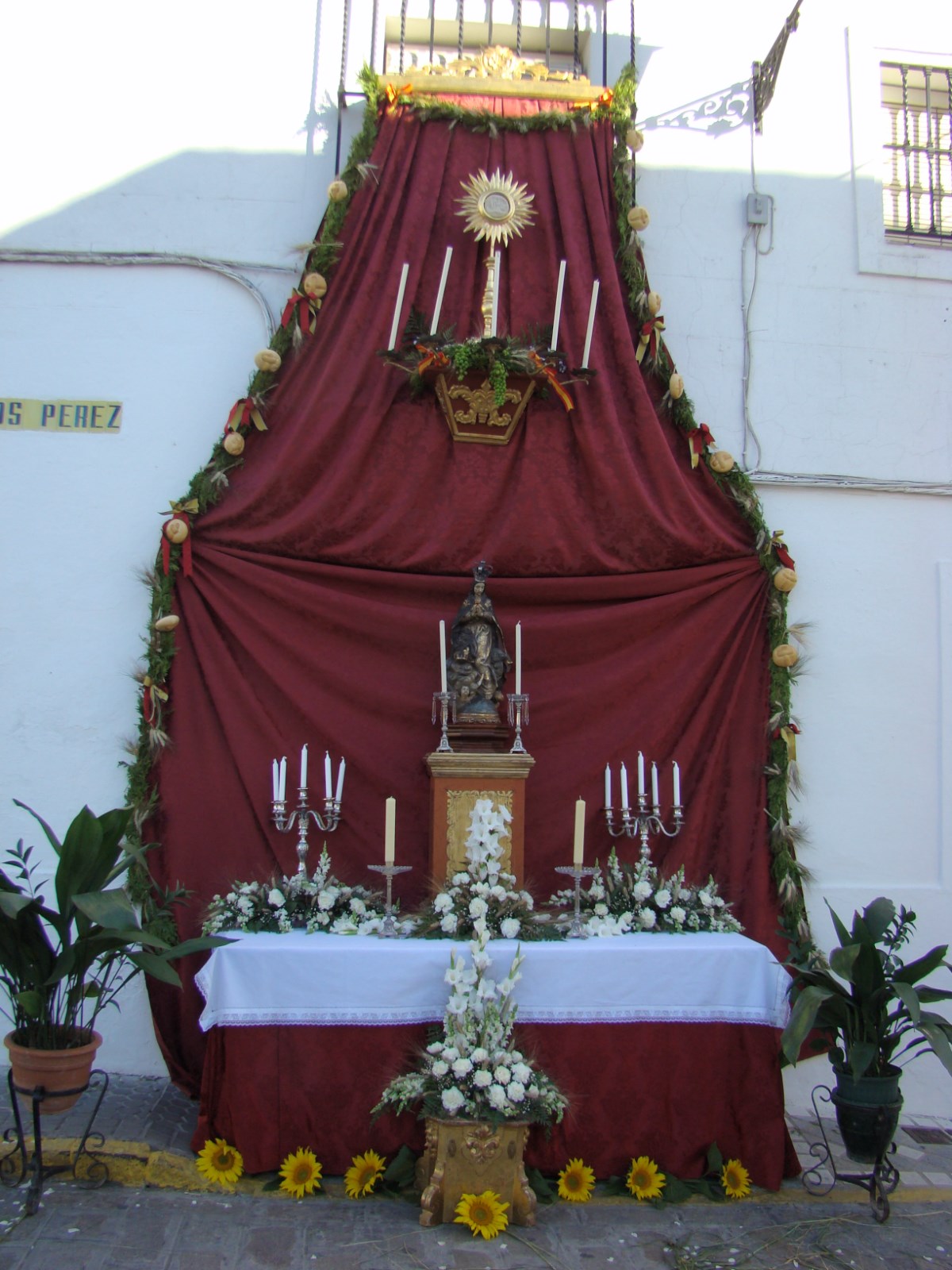A las ocho de la tarde sale la procesión del Corpus de la parroquia de Santa María de la Mesa. El recorrido que realiza es por las calles de la collación, las cuales son engalanadas con altares, alfombras de romero y juncia, así como hojas de palmera en las fachadas de las casas. Les mostramos algunos altares instalados en la presente edición de este año 2013.