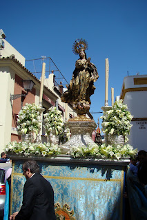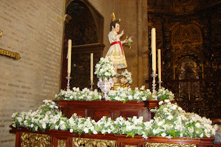 » El Corpus del popular barrio de Triana es uno de los más antiguos de la ciudad y que goza de mayor tradición, se puede decir que es el segundo en orden de importancia de ahí el apelativo de «Corpus Chico» en comparación con el catedralicio. Sale en la mañana del domingo desde la parroquia de Santa Ana y transcurre por un recorrido inalterable desde hace siglos. En la actualidad está formado por los siguientes pasos: el del Niño Jesús, las santas trianeras Justa y Rufina, la Inmaculada Concepción y la Custodia. Este año la principal novedad ha sido la incorporación de un nuevo paso con la figura de San Francisco de Paula.
