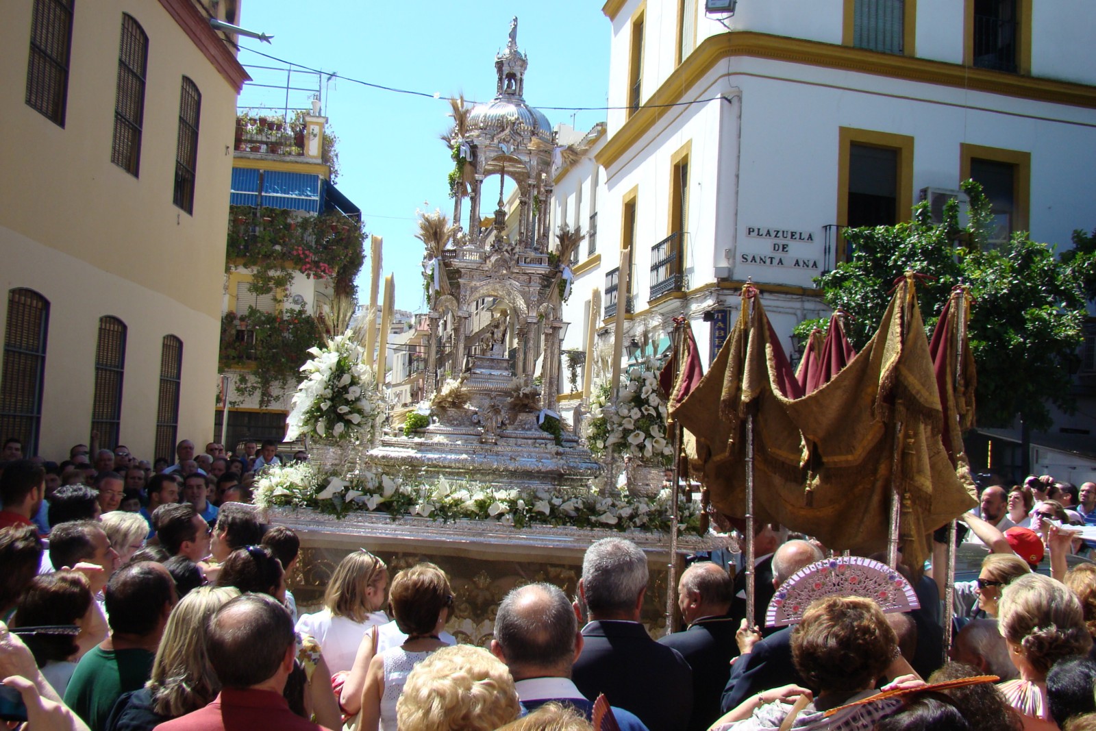 » El Corpus del popular barrio de Triana es uno de los más antiguos de la ciudad y que goza de mayor tradición, se puede decir que es el segundo en orden de importancia de ahí el apelativo de «Corpus Chico» en comparación con el catedralicio. Sale en la mañana del domingo desde la parroquia de Santa Ana y transcurre por un recorrido inalterable desde hace siglos. En la actualidad está formado por los siguientes pasos: el del Niño Jesús, las santas trianeras Justa y Rufina, la Inmaculada Concepción y la Custodia. Este año la principal novedad ha sido la incorporación de un nuevo paso con la figura de San Francisco de Paula.