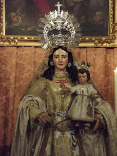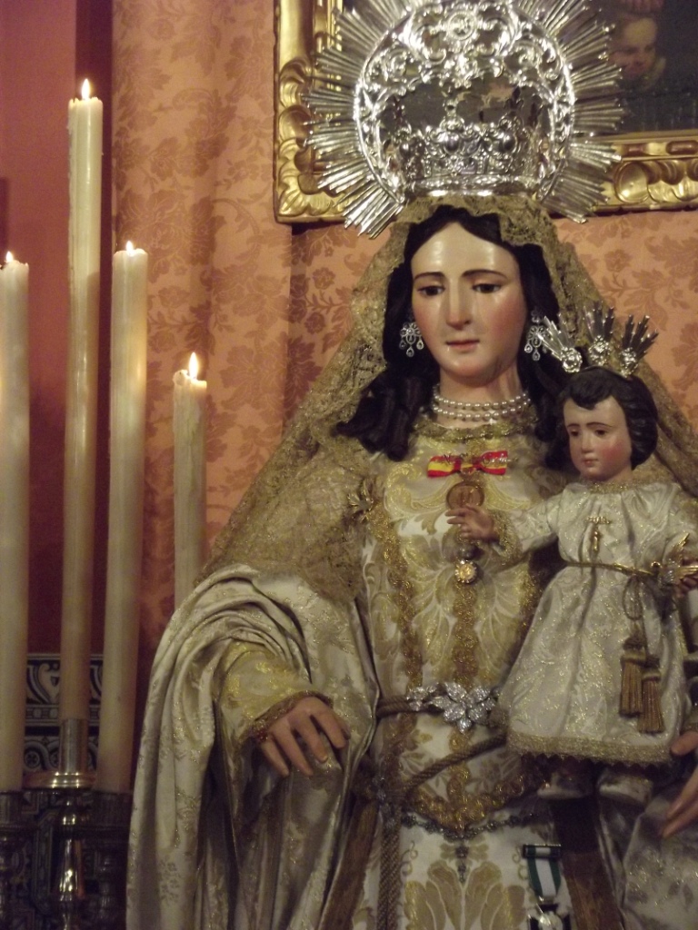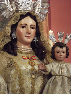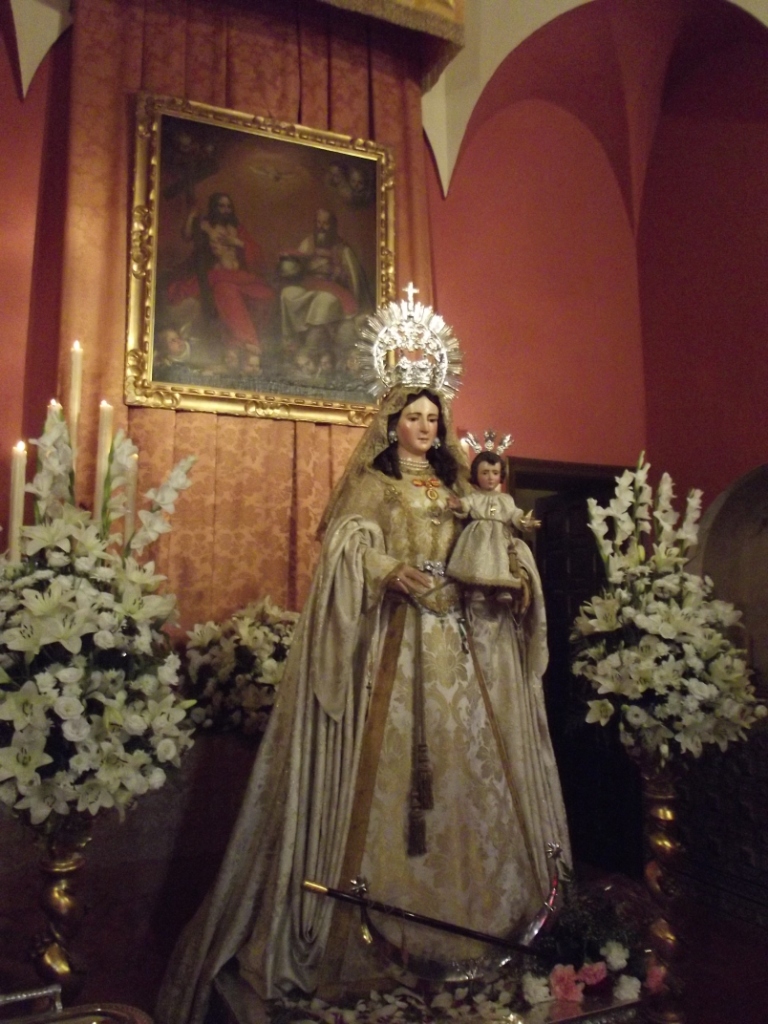 En los cultos de este año, esta antigua talla del siglo XVI, ha estado vestida completamente de blanco y en el altar del besamanos, como fondo, contó con un excelente lienzo representando a la Santísima Trinidad procedente de la iglesia parroquial de Santiago de la villa.