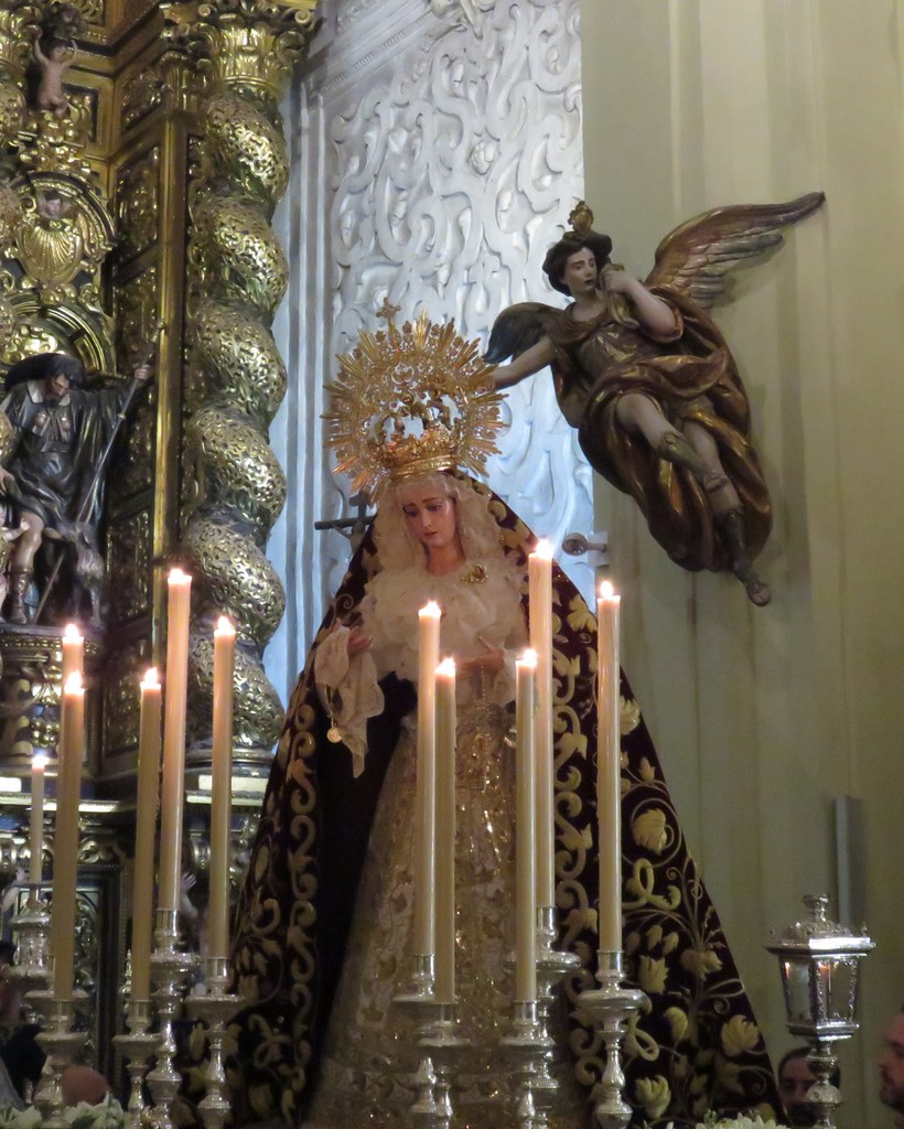 Durante los días 9,10 y 11 de diciembre se ha celebrado en la Capilla de Nª. Sª. Rosario el anual triduo en honor de nuestra dolorosa titular Mª. Santísima de Guadalupe. La función solemne del día de la festividad de la Virgen de Guadalupe se realizó en la iglesia de San Jorge de la Hermandad de la Santa Caridad, para ello el sábado por la tarde la virgen fue trasladada en andas hasta la iglesia cercana con el acompañamiento musical del coro de campanilleros Paz y Misericordia. Les mostramos diversos momentos del traslado de ida y vuelta. En esta ocasión nuestra dolorosa lucia un manto de camarín color burdeos perteneciente a la Hermandad del Cerro del Águila.