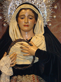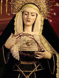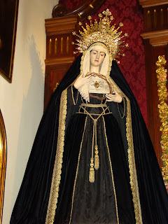 » En la ciudad de Sevilla llegado el mes de noviembre existe la tradición de ataviar a las dolorosas de acorde a la celebración religiosa del mes de los difuntos, es decir casi todas son vestidas de negro, color representativo del luto, aunque existen sus excepciones. Les mostramos las dolorosas que procesionan en la jornada del Lunes Santo.»