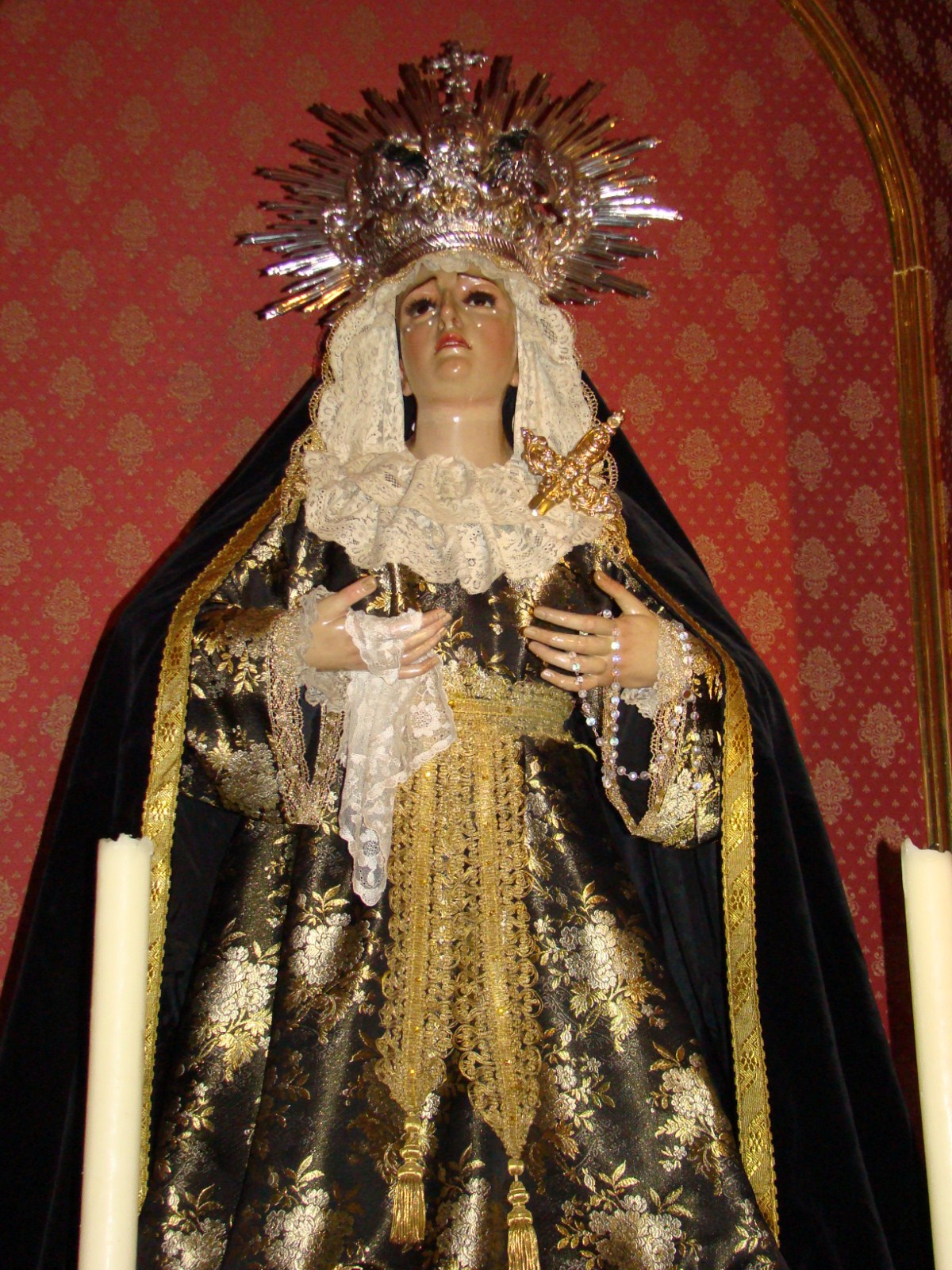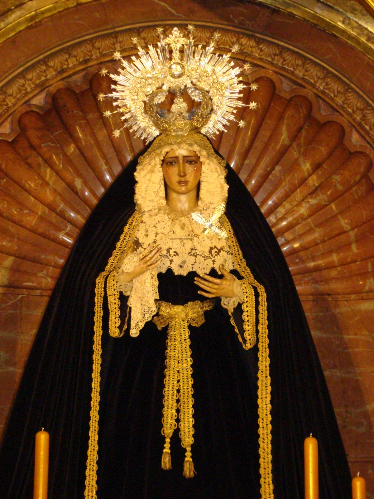 » En la ciudad de Sevilla llegado el mes de noviembre existe la tradición de ataviar a las dolorosas de acorde a la celebración religiosa del mes de los difuntos, es decir casi todas son vestidas de negro, color representativo del luto, aunque existen sus excepciones. Les mostramos las dolorosas que procesionan en la jornada del Martes Santo.»