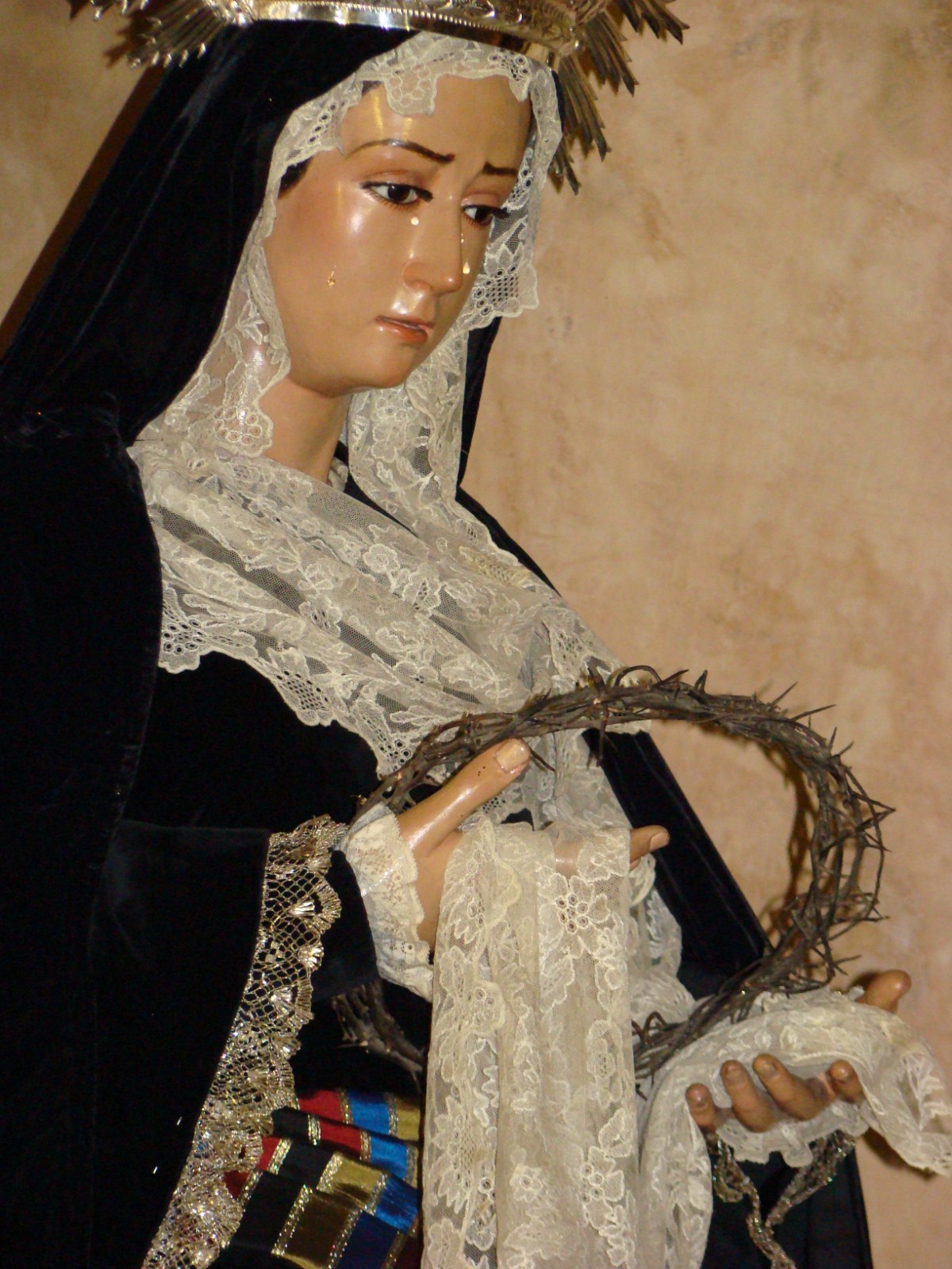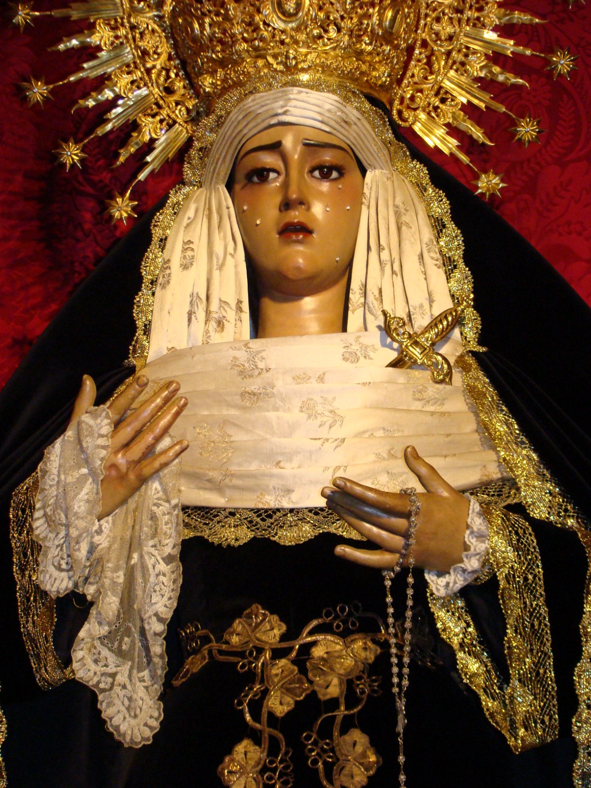 » En la ciudad de Sevilla llegado el mes de noviembre existe la tradición de ataviar a las dolorosas de acorde a la celebración religiosa del mes de los difuntos, es decir casi todas son vestidas de negro, color representativo del luto, aunque existen sus excepciones. Les mostramos las dolorosas que procesionan en la jornada del Miércoles Santo.»