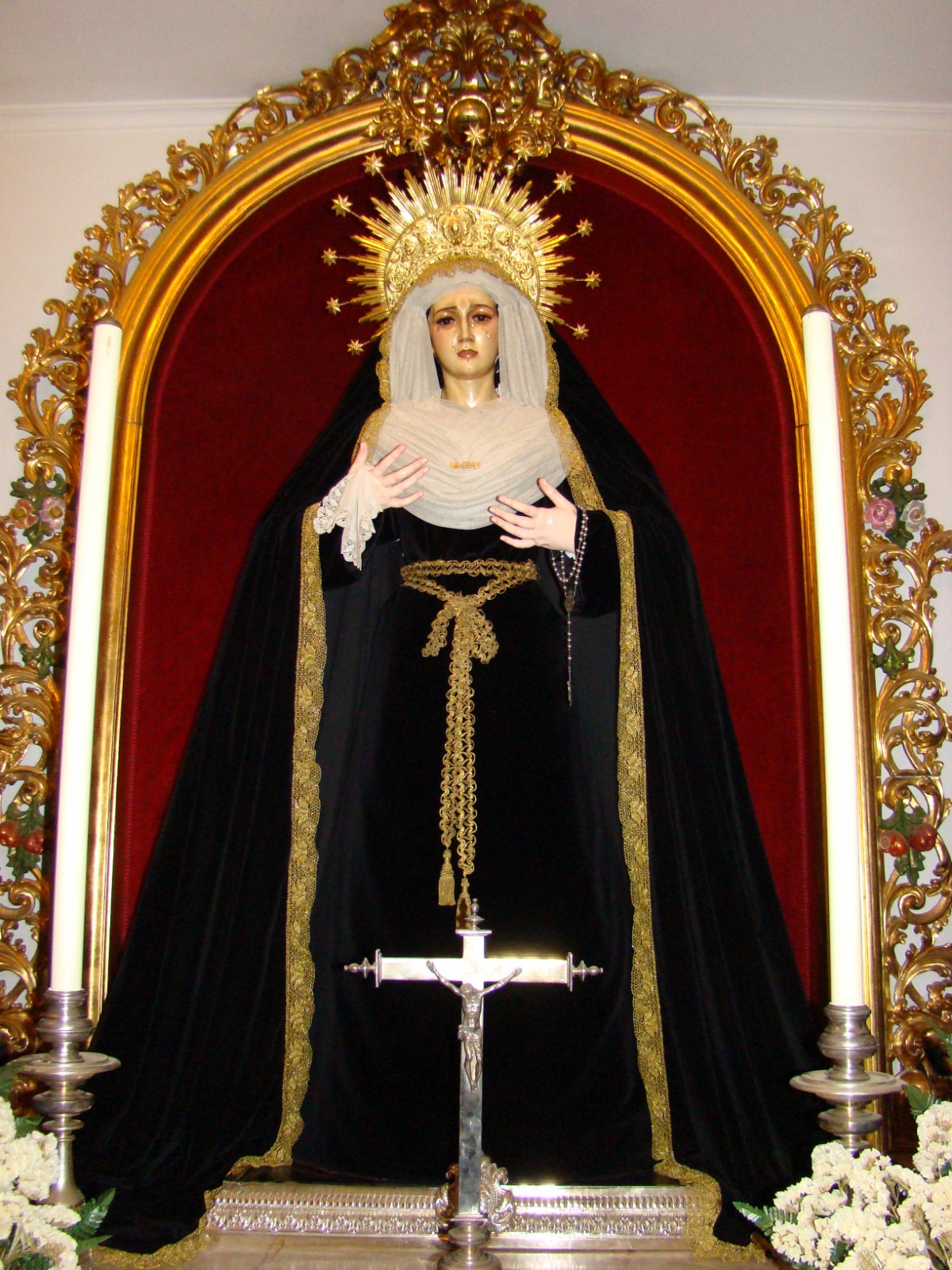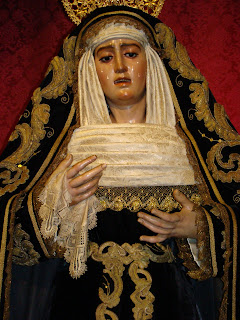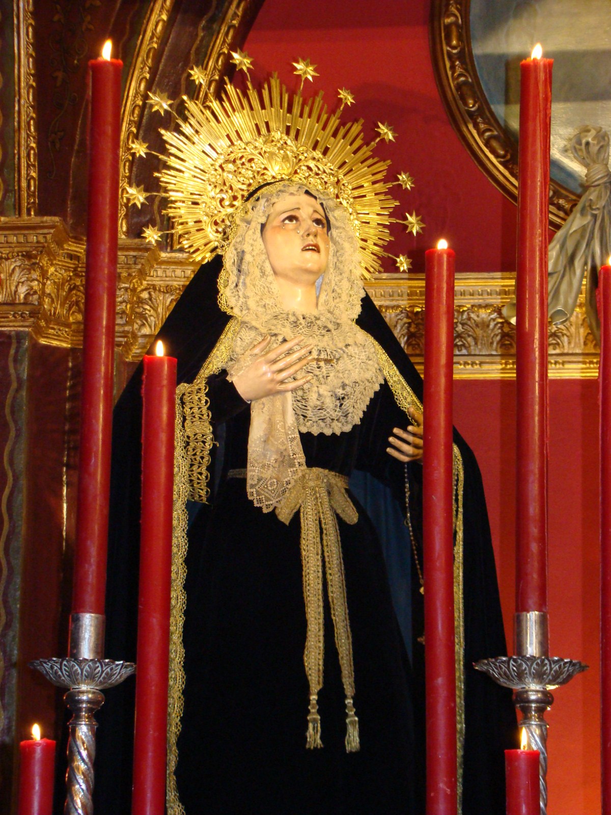 » En la ciudad de Sevilla llegado el mes de noviembre existe la tradición de ataviar a las dolorosas de acorde a la celebración religiosa del mes de los difuntos, es decir casi todas son vestidas de negro, color representativo del luto, aunque existen sus excepciones. Les mostramos las dolorosas que procesionan en la jornada del Sábado Santo.Existe una ausencia destacada, la de la Esperanza trinitaria que se encuentra en proceso de restauración»