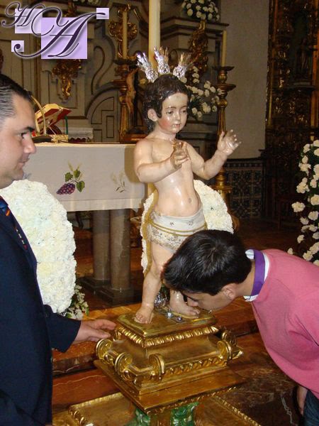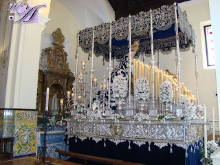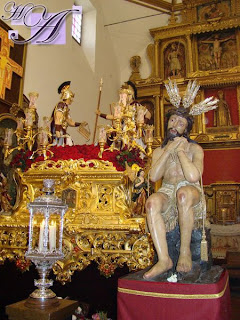 » El Domingo de Resurrección en Marchena se celebra de una manera singular. Todos los marcheneros se echan a la calle a visitar los templos donde residen sus Hermandades, los pasos se encuentran expuestos con la candeleria encendida y algunas imágenes como el Cristo de San Pedro, el Señor de la Humildad y Paciencia, Nº P. Jesús de la Paz, Mª Santísima de la Palma y el Dulce Nombre de Jesús se encuentran en besamanos o besapiés.Dos cosas llaman la atención : la gran cantidad de saetas que son interpretadas delante de los pasos e imágenes por los marcheneros, y por otro lado la costumbre de agasajar a los visitantes con una copita de anís acompañado de un dulce. Una mañana de domingo que se recomienda a todos los cofrades en general se acerquen hasta Marchena para contemplar la belleza y rico patrimonio de su Semana Santa.»