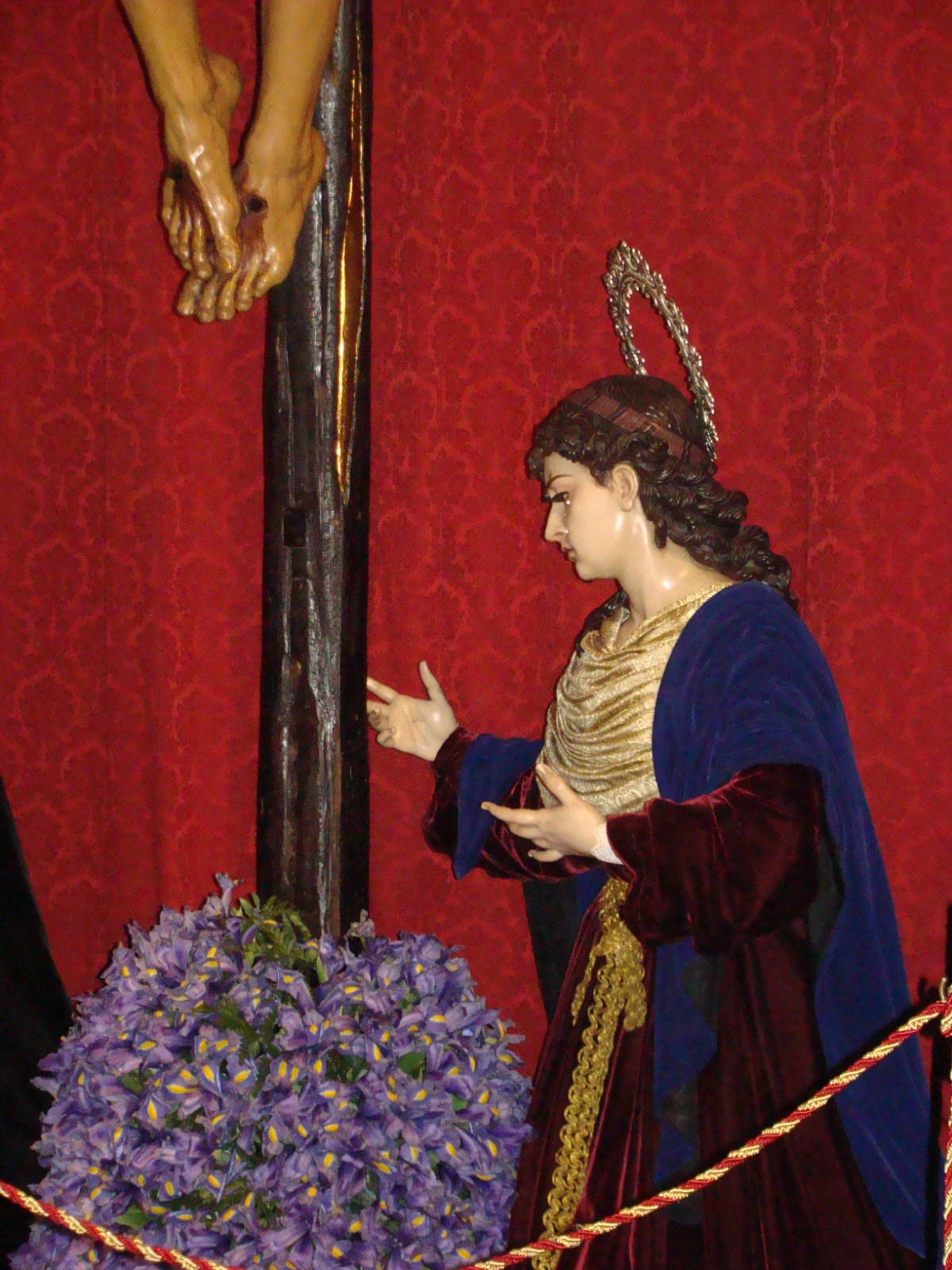 En estos días se muestra en nuestra capilla una imagen inusual, el misterio del paso de cristo de la Hermandad dispuesto en el suelo a modo de altar. Este montaje se ha realizado para presentar la restauración de la figura secundaria del “ángel” que figura de manera simbólica en el paso de misterio. La restauración ha sido realizada por nuestros hermanos Fernando Trigo, actual prioste segundo y por Gracia Sallés actual secretaria segunda, ambos licenciados en bellas artes.