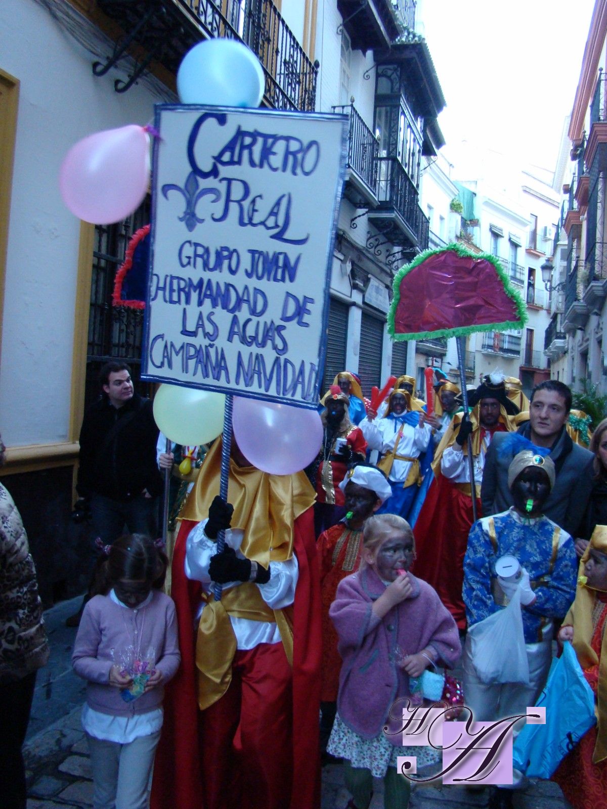 » En la tarde del domingo 2 de enero ha salido a las calles de Sevilla el Cartero Real de la Hermandad de Las Aguas, encarnado este año por el capataz del paso de Cristo D. Gonzalo Carrión. El acompañamiento musical corrió a cargo de la Banda de cornetas y tambores Nº Padre Jesús de los Remedios de Castilleja de la Cuesta que junto a los miembros del grupo joven animaron durante todo el recorrido. El acto finalizó con la entrega por parte de los pequeños de las cartas para sus Majestades de Oriente. Felicitar a la Hermandad por la gran participación y la buena organización del acto.»