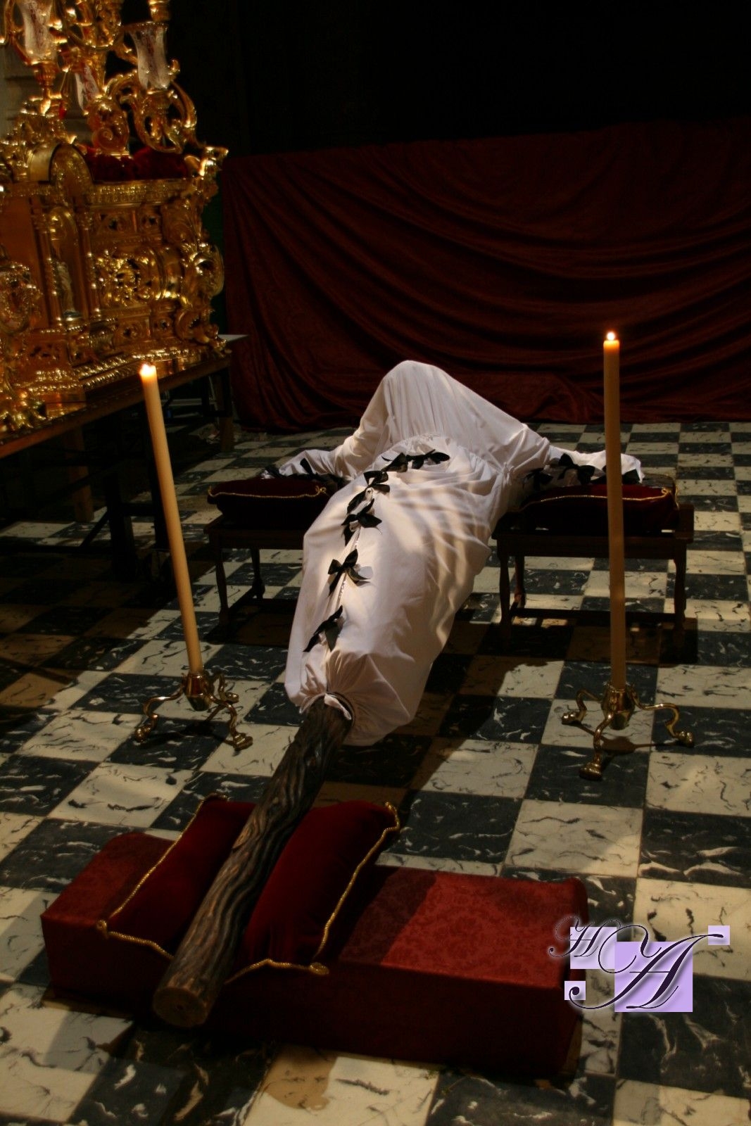 » En Setenil de las Bodegas localidad de la serranía de Cádiz, existe la costumbre por parte de la Hermandad de la Veracruz de amortajar su imagen del crucificado. En la noche del miércoles santo se realiza el traslado del crucificado desde la iglesia parroquial a la ermita de San Sebastián yendo la imagen de esta forma tan particular.»