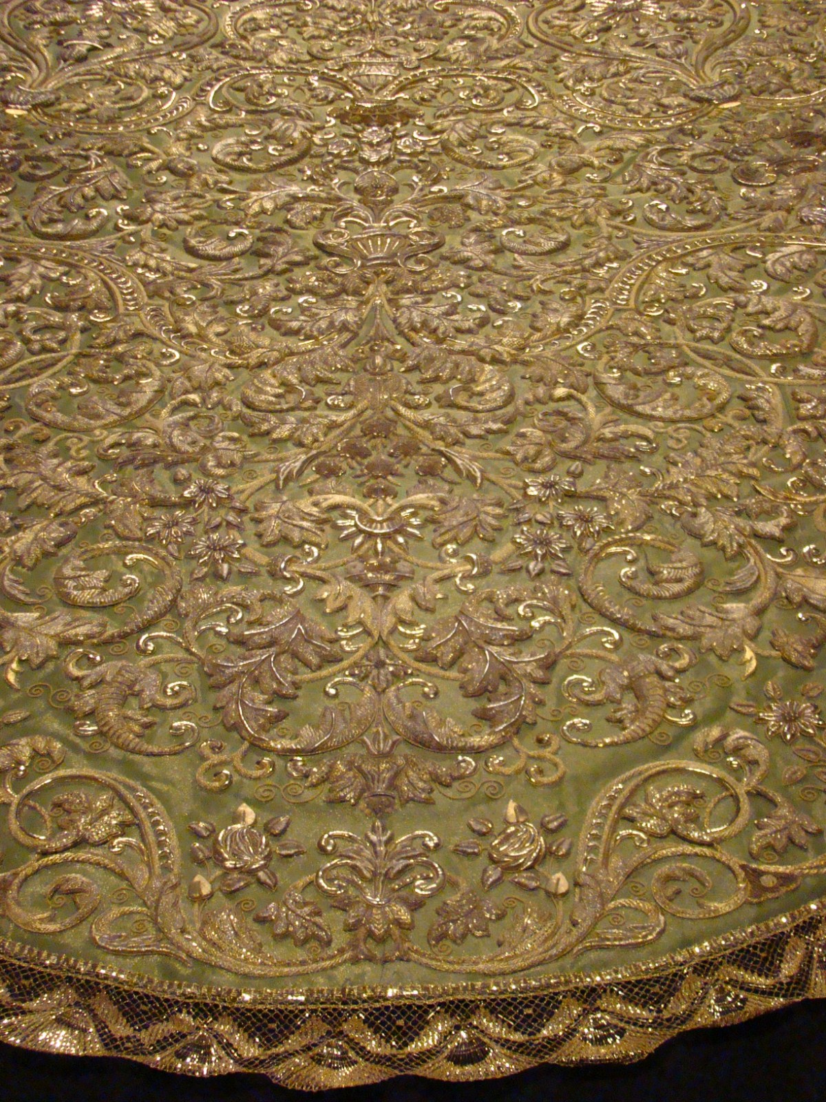Durante el fin de semana previo a Semana Santa se ha presentado en la sede central de Cajasol uno de los “reestrenos” más esperados, se trata de la recuperación del famoso manto de tisú de Nª Sª de la Esperanza Macarena, la última gran obra del recordado y genial bordador Juan Manuel Rodríguez-Ojeda, que concluyera en el año 1930. Después de varios años de trabajo por parte del taller de Fernández y Enríquez de Brenes, la pieza vuelve a su estado original en cuanto al diseño y dibujo, viendo los resultados, sin duda ha sido todo un acierto por parte de la Hermandad el recuperar esta pieza emblemática del bordado procesional sevillano.
