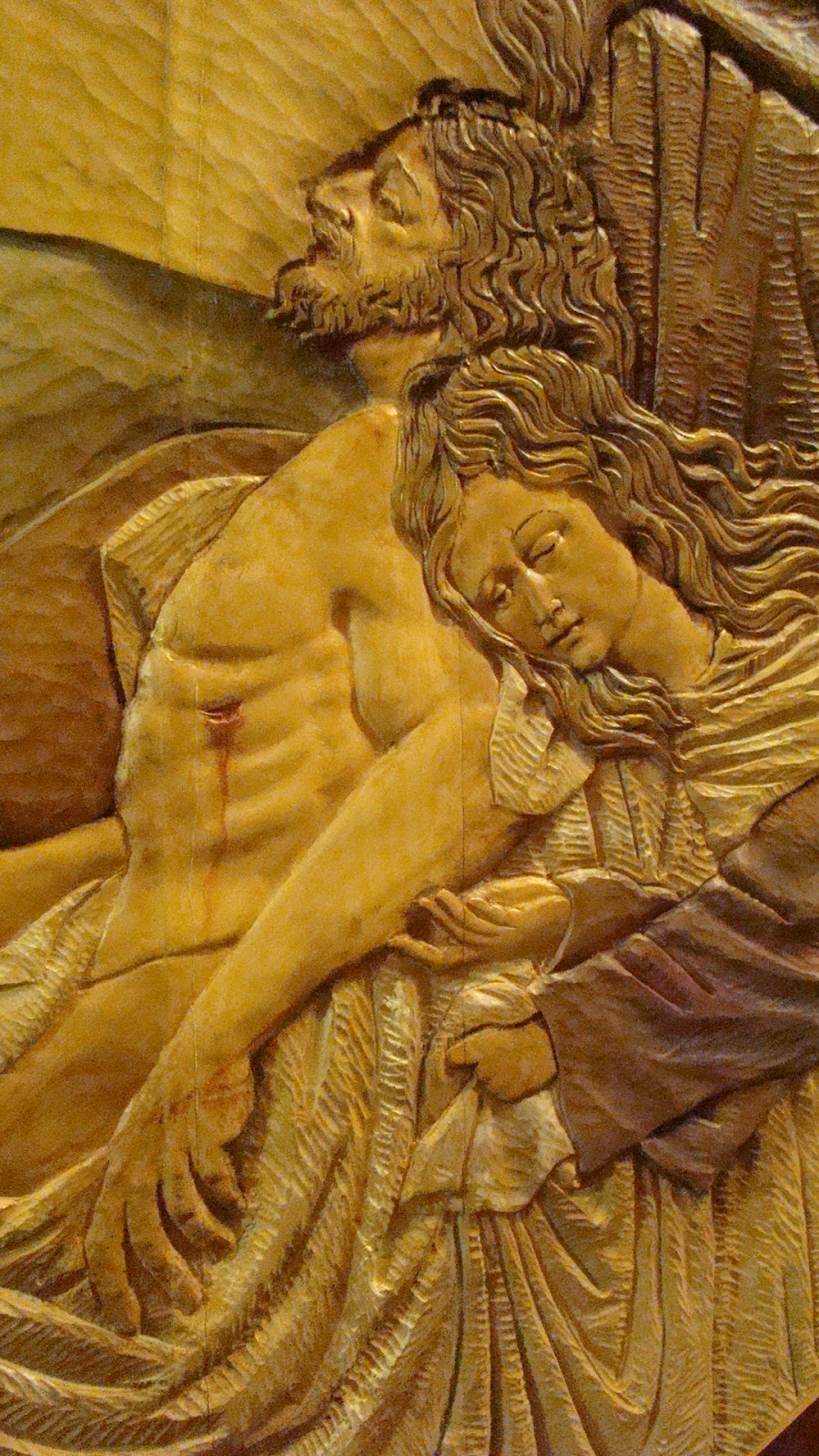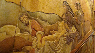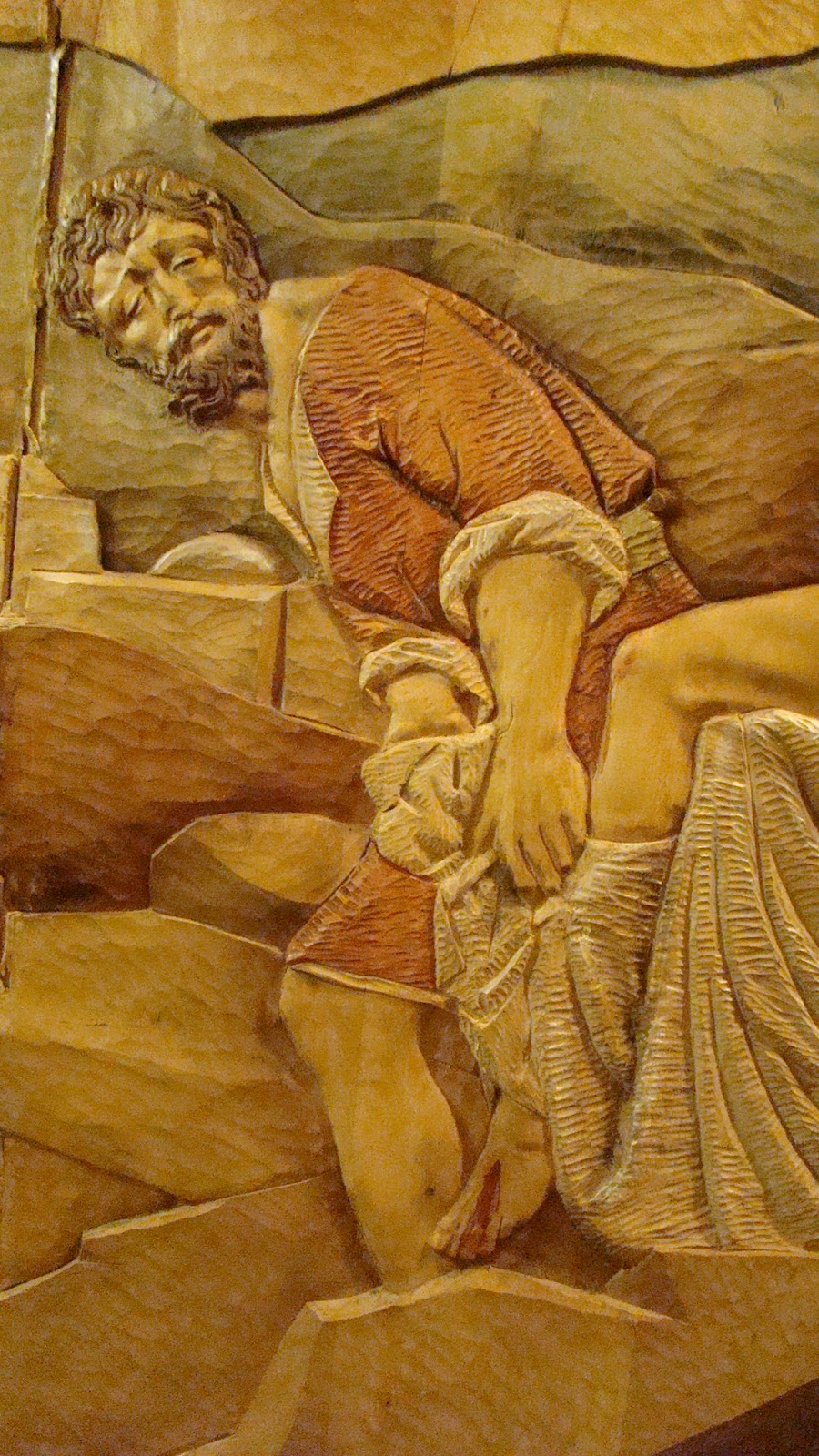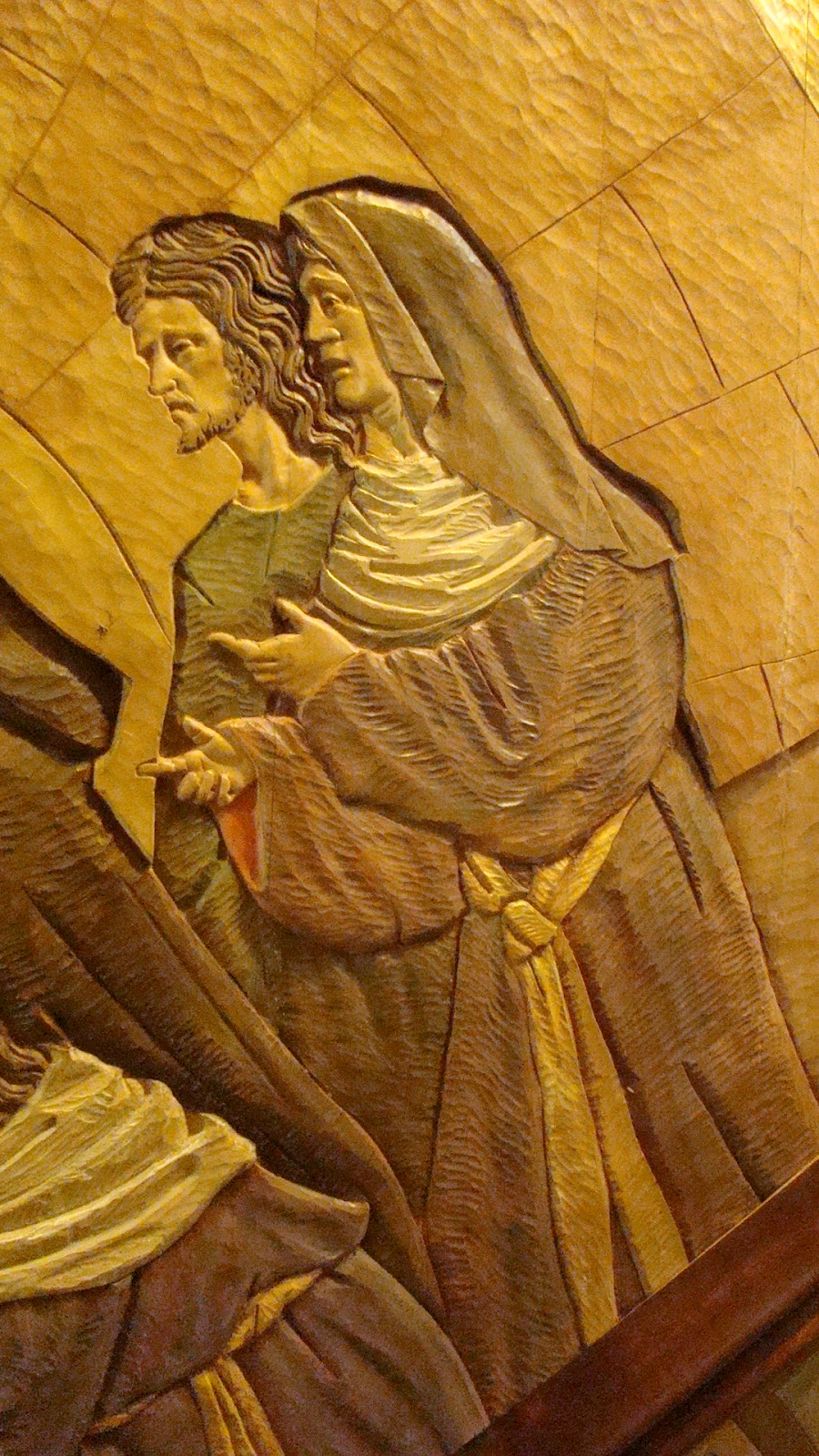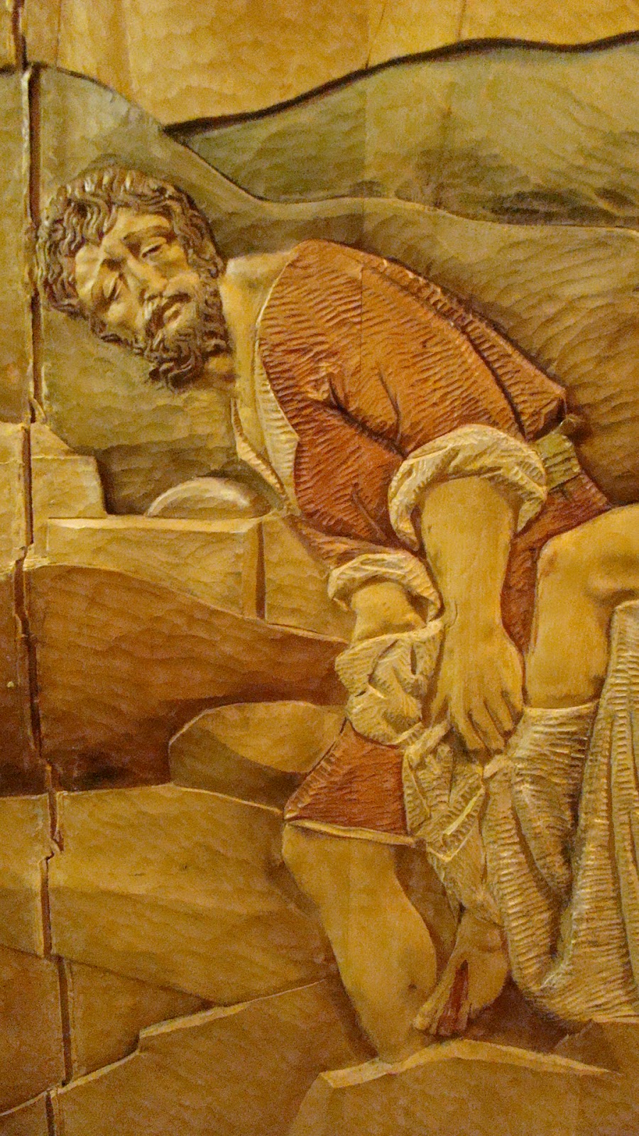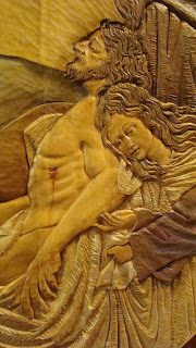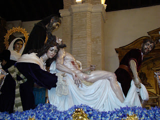 » En la localidad manchega de Manzanares se encuentra la Ermita de la Veracruz, dicho lugar se encuentra presidido por un retablo realizado en 1965 por Luis Ortega Bru, en su parte central se encuentra la imagen de Nº P. Jesús del Perdón, patrón de la población. En la década de los ochenta la Hermandad decide hacer un camarín visitable, similar al del Gran Poder de Sevilla. Es precisamente en este espacio donde se encuentra el relieve que representa el misterio del Traslado al Sepulcro de la Hermandad sevillana de Santa Marta, obra como es sabido de Ortega Brú. Este relieve ha sido realizado por Manuel Ortega Alonso sobrino del escultor. Imaginamos que ha sido un pequeño homenaje a la figura de su tio.»