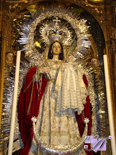 «A veces los pequeños detalles son los que demuestran que el universo de las cofradias de Sevilla es singular y único con respecto al resto de otras ciudades. En estos días posteriores al nacimiento de Jesús en la Hermandad de La Lanzada han tenido la feliz idea de vestir al niño que lleva en sus manos la Virgen de la Esperanza Divina Enfermera tal y como si fuera un recien nacido de nuestros tiempos».