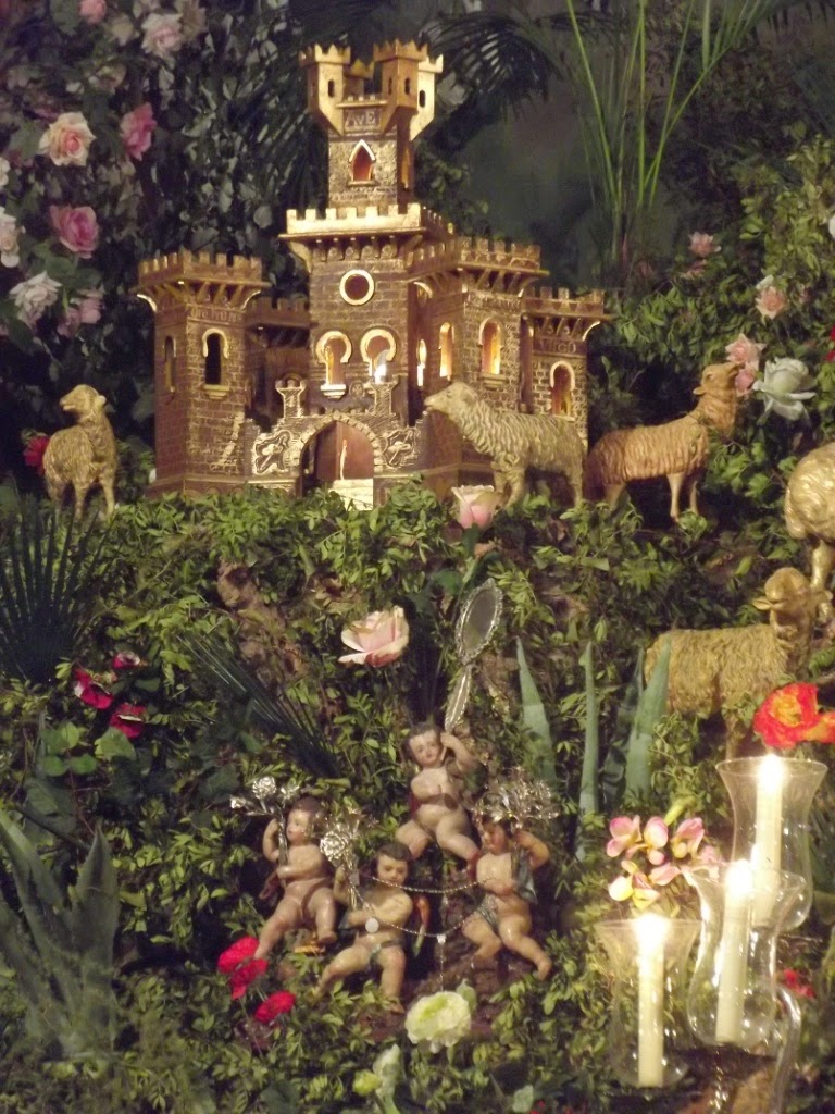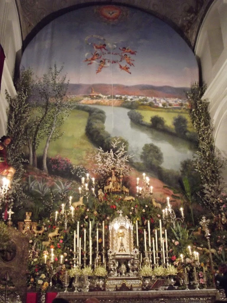 Es un monumental altar, con plantas naturales y diversas tallas colocadas a lo largo del monte que remata la propia imagen de la Virgen. Como fondo un enorme telón pintado que recrea en el mismo una vista del pueblo de Cantillana.