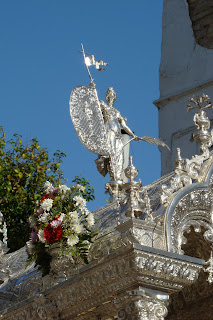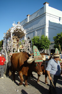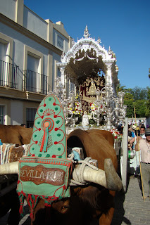 Fotografías del paso de la Hermandad del Rocío de Sevilla Sur filial nº 72 por Villamanrique de la Condesa, estando declarado el paso de Hermandades por dicha localidad «Fiesta de Interés Turístico Nacional de Andalucía».