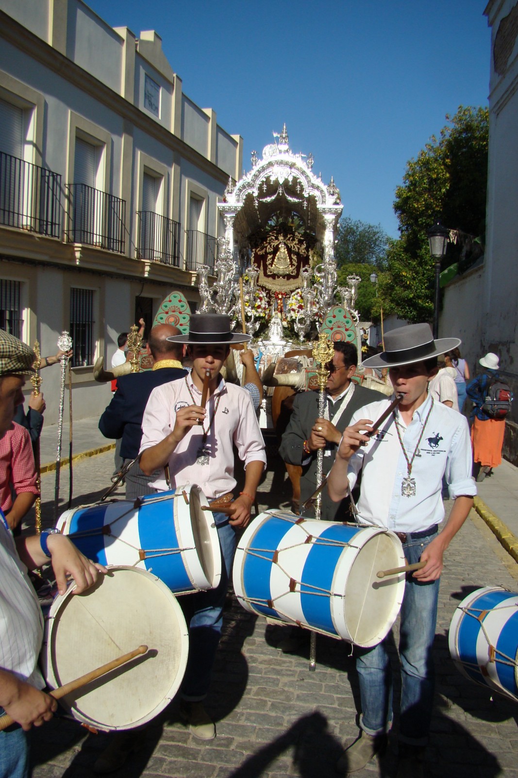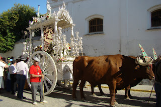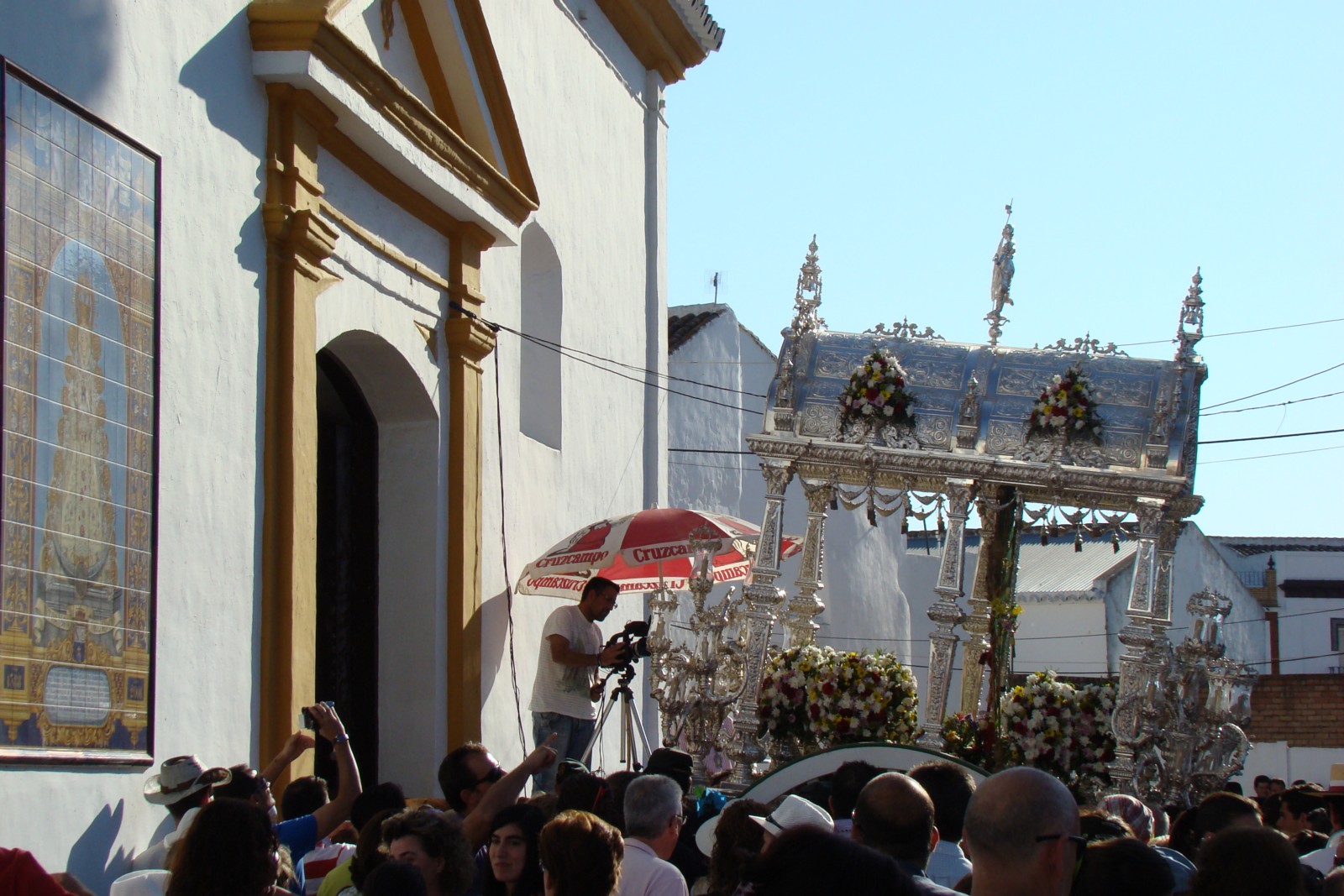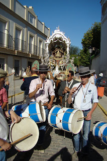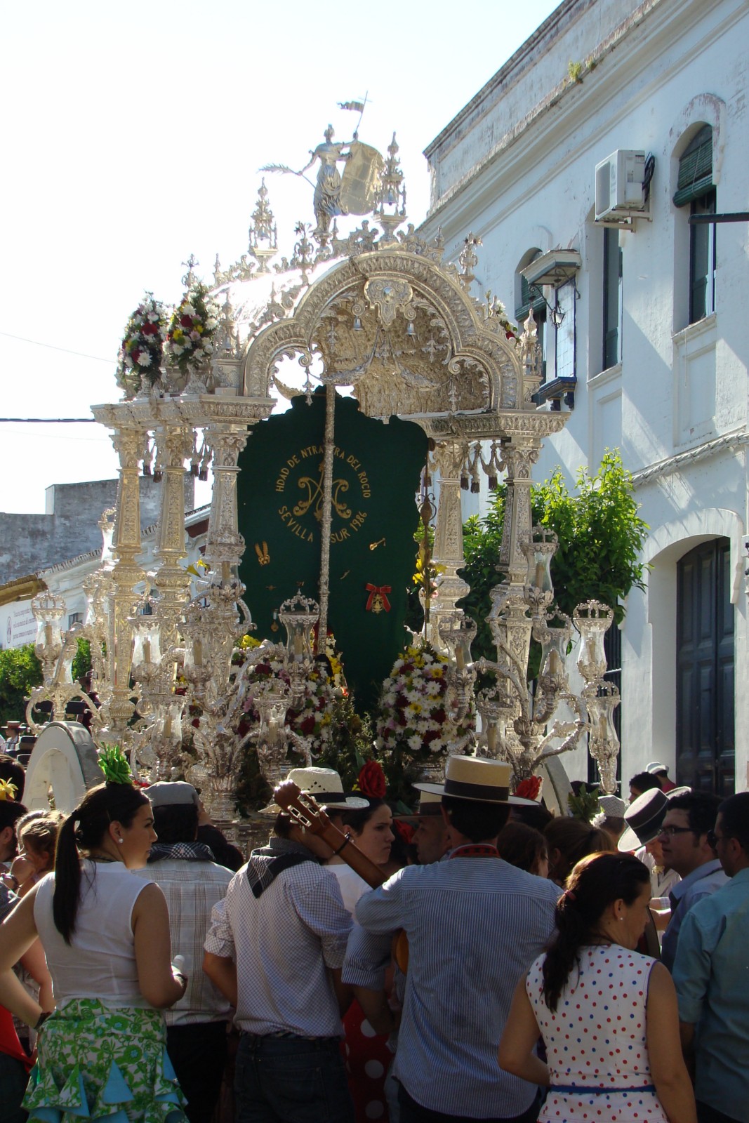 Fotografías del paso de la Hermandad del Rocío de Sevilla Sur filial nº 72 por Villamanrique de la Condesa, estando declarado el paso de Hermandades por dicha localidad «Fiesta de Interés Turístico Nacional de Andalucía».