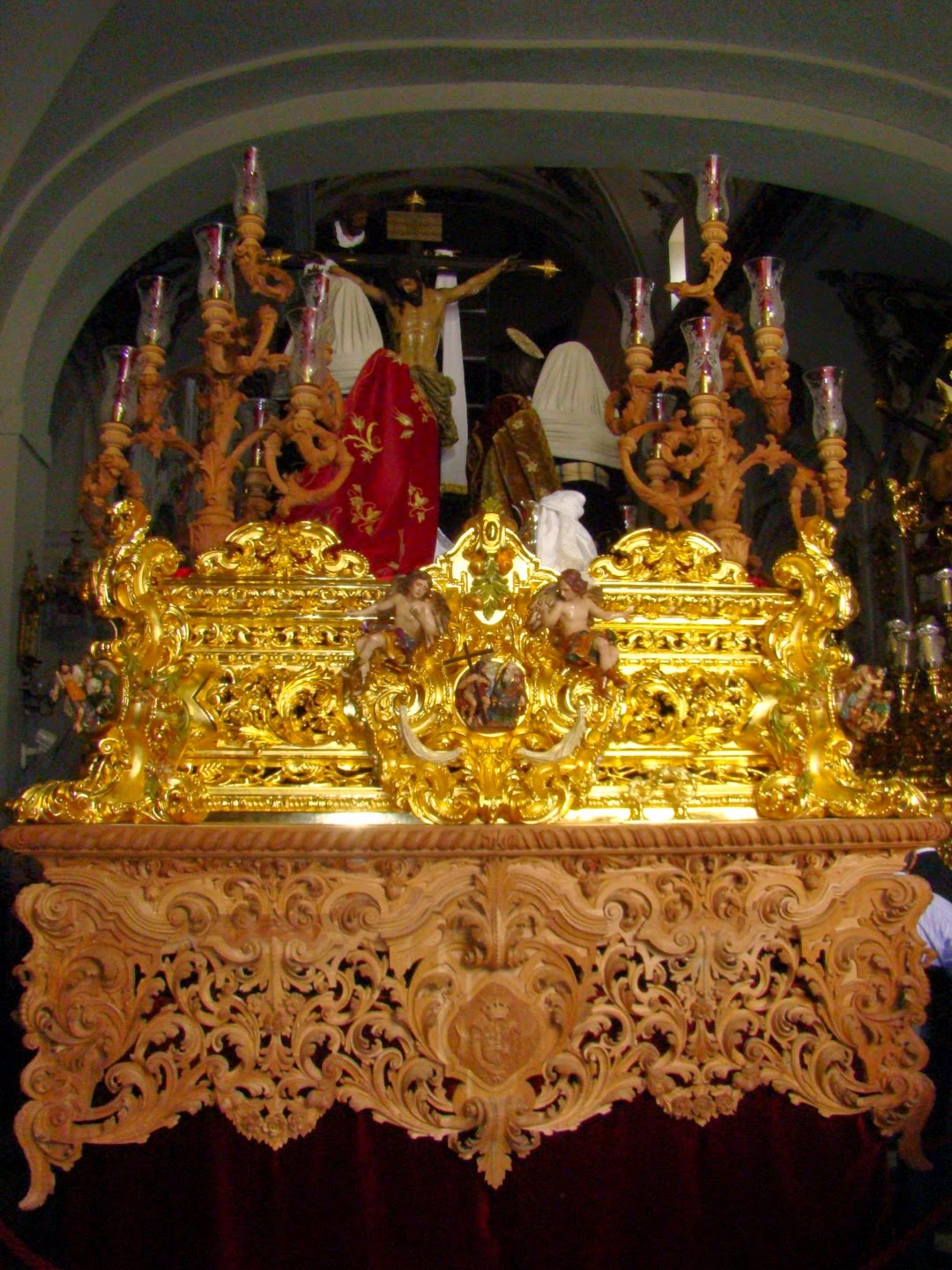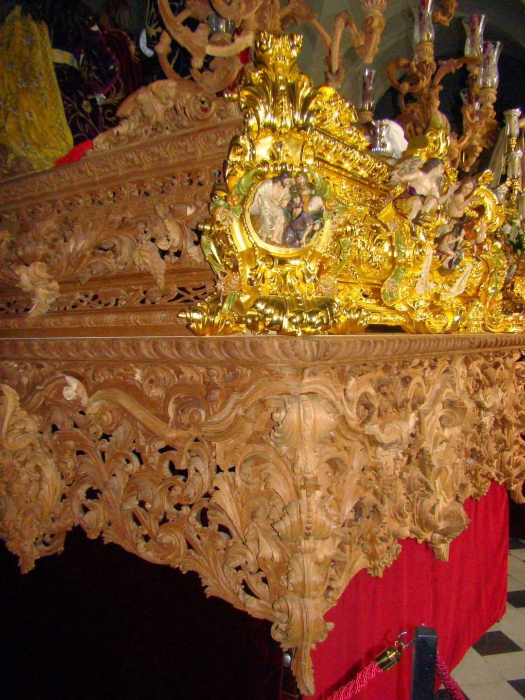 En esta semana santa el paso del Santísimo Cristo de las Cinco Llagas de la Hermandad de la Trinidad estrena la primera fase del dorado de su canastilla, concretamente el frontal delantero, obra realizada en el taller de los Hermanos González. Recordar que este nuevo paso se terminó el año pasado al completo con la fase de talla realizada por el taller de los Hermanos Caballero, siendo las cartelas obra del escultor Mariano Sánchez del Pino. En los próximos años se irá completando el dorado del paso hasta su total acabado, sin duda una bella y notable obra.