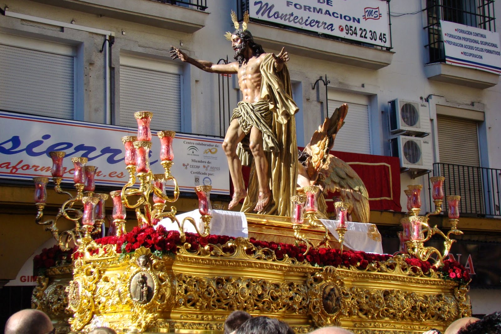El paso de Nº Señor Jesús Resucitado continua su proceso de remodelación , en el presente año estrena el dorado de las esquinas que fueron modificadas por la ampliación del año pasado obra realizada por el dorador Antonio Urbano Albalá. Estrena los nuevos candelabros de guardabrisas realizados en el taller de Francisco Verdugo, de mayor tamaño que los anteriores. También se estrenan las coronillas de las tulipas obra realizada en el taller de Hijos de Juan Fernández.