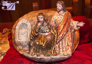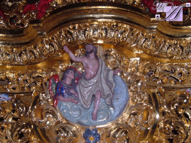 Fotografías de las cartelas y dorado de los costeros de la canastilla del paso de misterio estrenados por nuestra Hermandad de Las Aguas el pasado Lunes Santo.