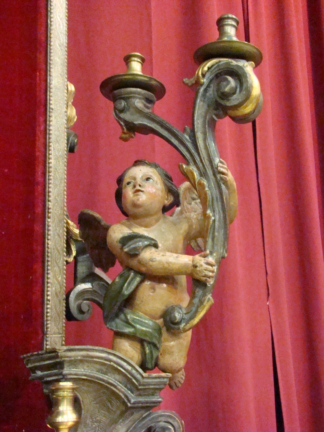 Entre los enseres más destacados figuran, el aparato de manifestador atribuido a Juan Bautista Petroni y fechado en 1793, de este mismo autor se incluyen unas figuras representando las Virtudes teologales y la imagen de la Virgen de Consolatrix Aflictorum fechada en 1801. Una custodia en plata sobredorada del siglo XVIII, varios crucificados de pequeño formato, uno de ellos atribuido a Pedro Millán( siglo XVI) y otro atribuido a Cristóbal Ramos del siglo XVIII. También destaca la imagen de la Virgen de los Reyes obra de Sebastián Santos Rojas.