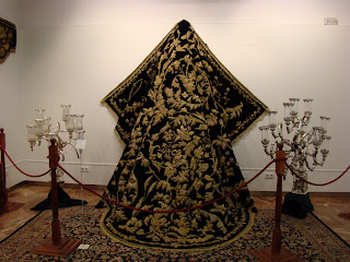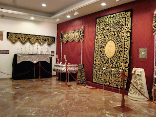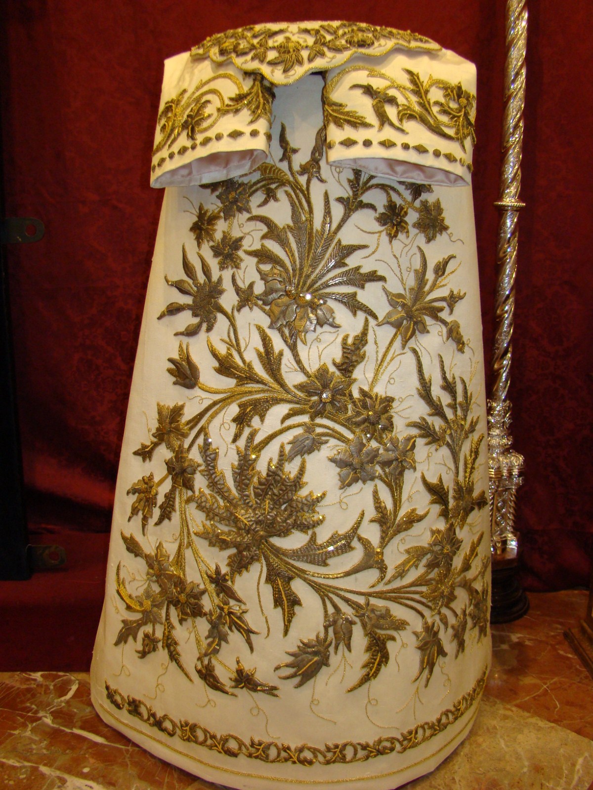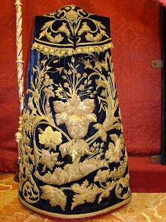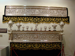 Con el título de “ Un palio en el Arenal: Mayor Dolor en su Soledad” la Hermandad de la Carretería ha inaugurado una exposición donde muestra su rico patrimonio, dedicando especial atención a su paso de palio que en estos últimos años ha ido mejorando ostensiblemente, intentando recuperar la estética del que desgraciadamente desapareció en un incendio a mediados del siglo XX. En esta segunda parte les mostramos los enseres pertenecientes al paso de palio y al ajuar de Nª Sª del Mayor Dolor en su Soledad.