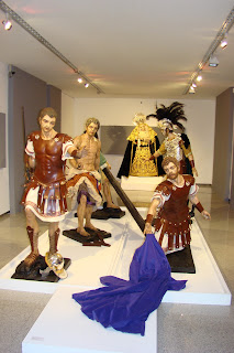 » En el Centro Cultural Cajasol de la calle Laraña se muestra estos días una exposición de imagineria cofrade titulada «Cuatro misterios para Andalucía». Las obras que se muestran han sido realizadas por el escultor Manuel Ramos Corona. Lo más destacado es la presencia de los conjuntos escultóricos del paso de Nº Padre Jesús Despojado de sus vestiduras de Sevilla y del paso de Humildad y Paciencia de Málaga, otras imágenes presentes son una Magdalena perteneciente al paso de Jesús Despojado de Granada, un sayón del paso del Soberano Poder de Jerez de la Frontera, una dolorosa de propiedad particular y la efigie de Santa Ángela de la Cruz que se venera en Alcalá de los Gazules (Cádiz). Hasta el 14 de marzo estará abierta al público la exposición.»